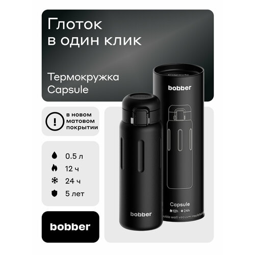 Компактная и лёгкая термокружка с закрытой питьевой системой - идеальный вариант для тех, кто любит комфорт и удобство. Отлично подойдет для города, активного отдыха, работы, путешествий и занятий спортом. Благодаря компактности и небольшому весу кружка легко поместится даже в самую небольшую сумку. Закрытая питьевая система обеспечит сохранность температуры горячих и холодных напитков, а надёжный фиксатор защиту от протекания. Благодаря вакуумной изоляции и использованию высококачественных материалов эта кружка сохранит ваш любимый напиток горячим до 12 часов и холодным до 24. Гигиеничная питьевая система и удобная кнопка для открытия крышки одной рукой, делают использование кружки максимально комфортным и безопасным. Два силиконовых кольца гарантируют 100%-ную защиту термокружки от протекания. Компактные размеры кружки удобны для размещения в любом подстаканнике. Термокружка Bobber Capsula, в комплекте с премиальным тубусом с лаконичным дизайном, станет прекрасным и стильным подарком для ваших близких.
