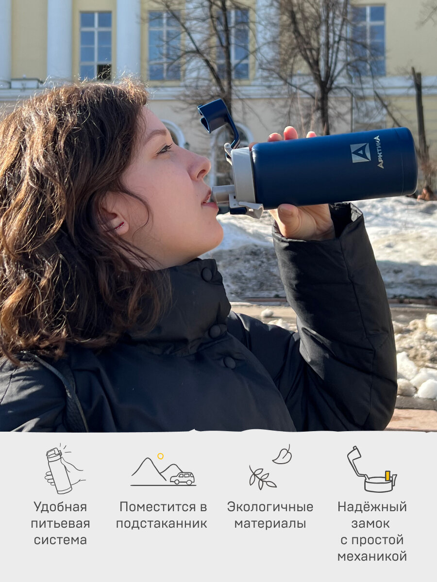 Термокружка Арктика объемом 0,5 литра - это идеальное решение для тех, кто ценит горячие и холодные напитки в любое время и в любом месте. Удобная питьевая система с крышкой, оснащенной замком-фиксатором, позволяет пить из термоса на ходу с помощью специального носика для питья, что делает его идеальным выбором для спортсменов, велосипедистов, студентов или школьников.