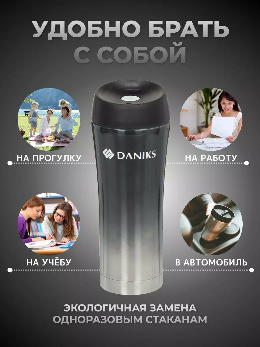Купить Термокружка нержавеющая сталь, 0.45 л, узкая горловина, Daniks, колба нержавеющая сталь, графит, SL-NT015-met-grpht с доставкой по всей России.