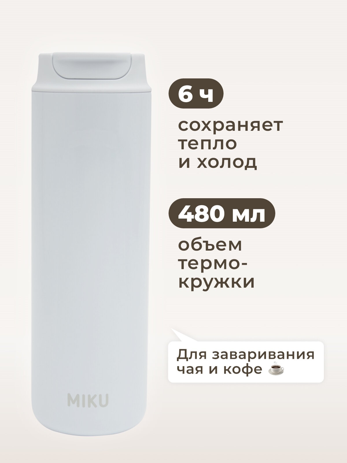 Термокружка MIKU объемом 480 мл сохраняет температуру горячих и холодных напитков до 6 часов.