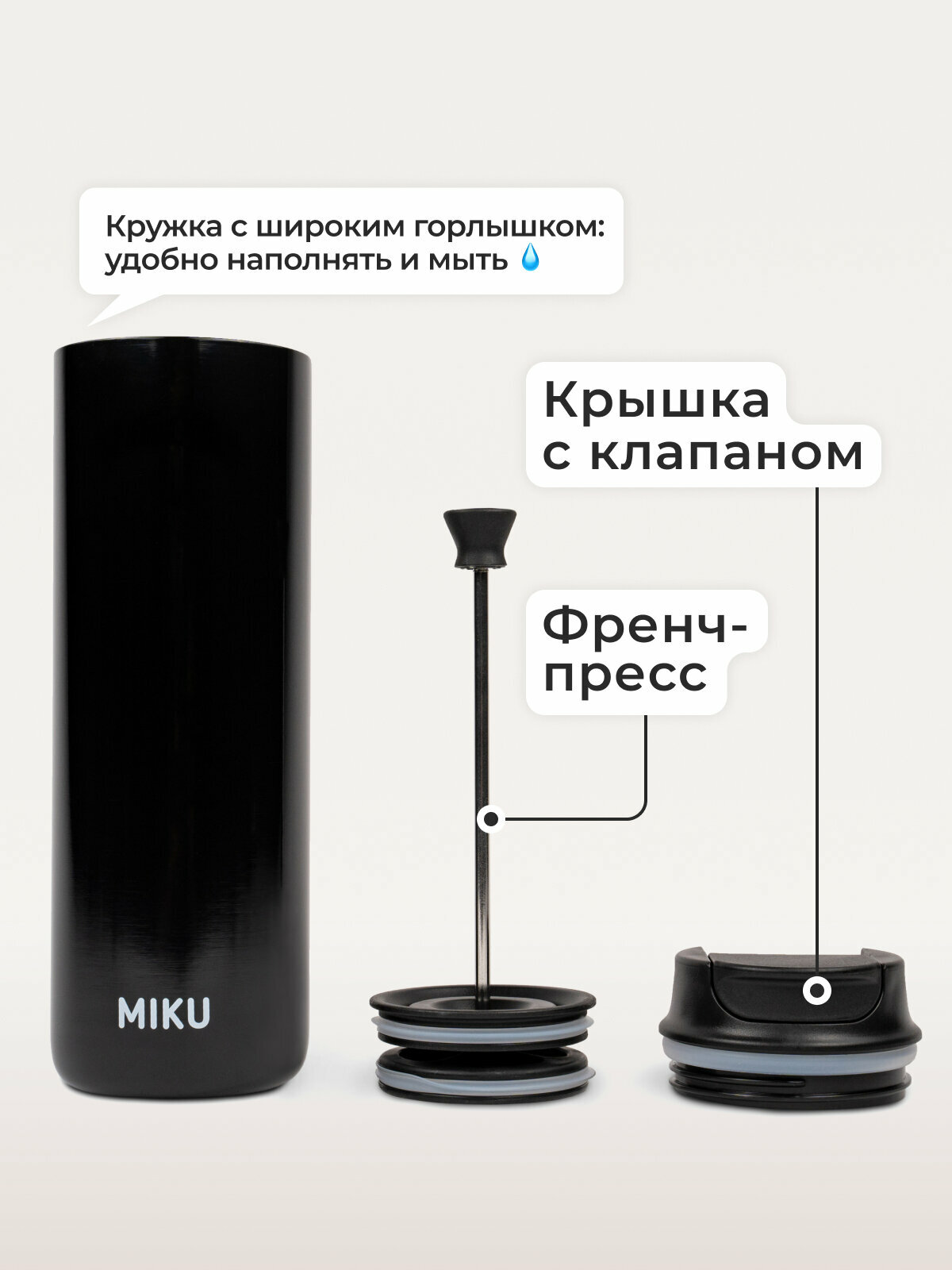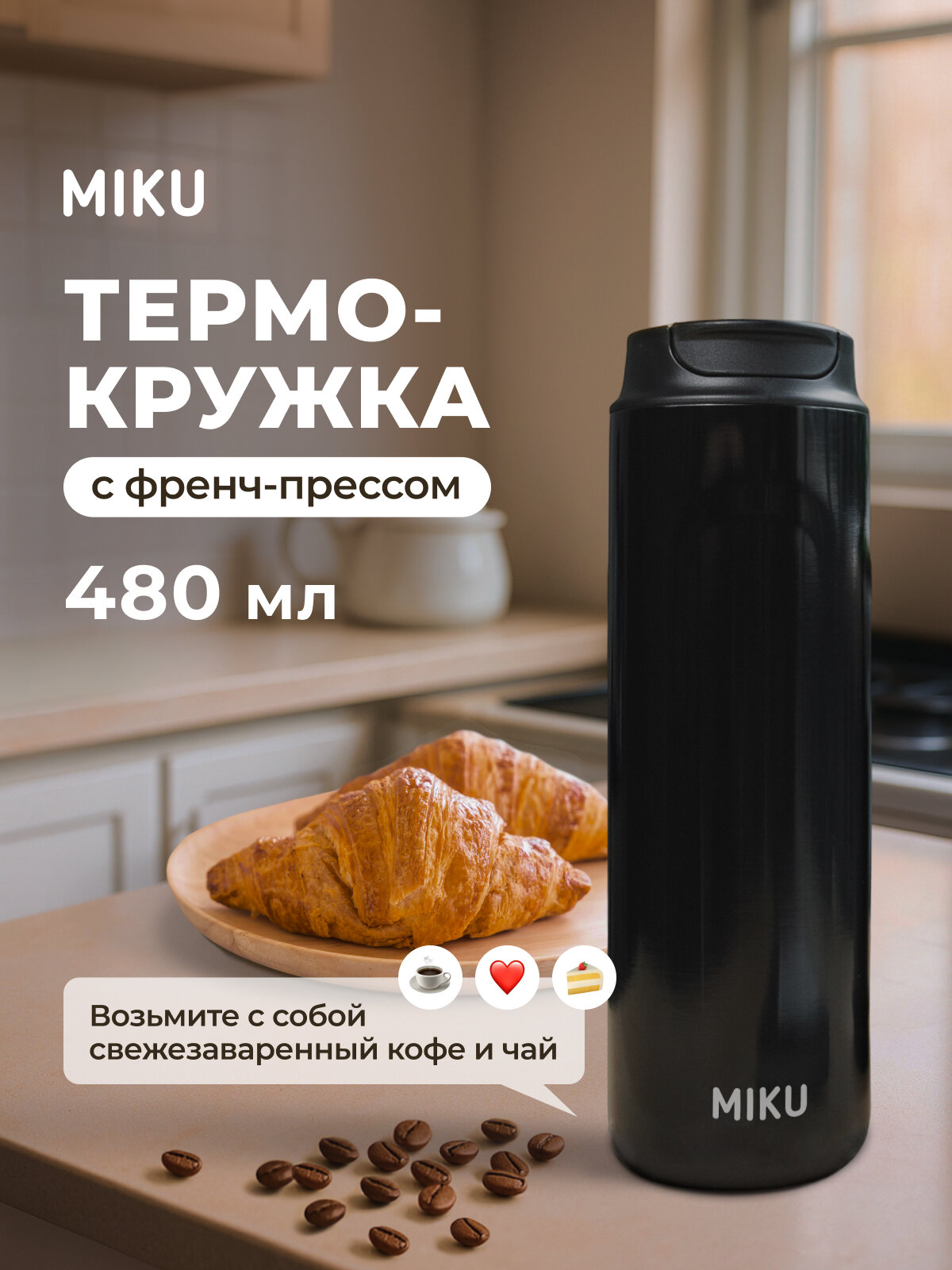 Термокружка с френч-прессом MIKU 480 мл (Черный): сравнение цен, характеристики, фото, актуальное наличие и цены.