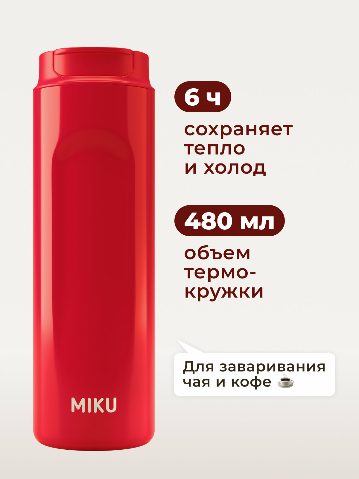 Термокружка MIKU объемом 480 мл сохраняет температуру горячих и холодных напитков до 6 часов.