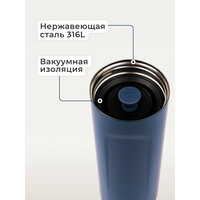 Термокружка MIKU объемом 480 мл сохраняет температуру горячих и холодных напитков до 6 часов.
