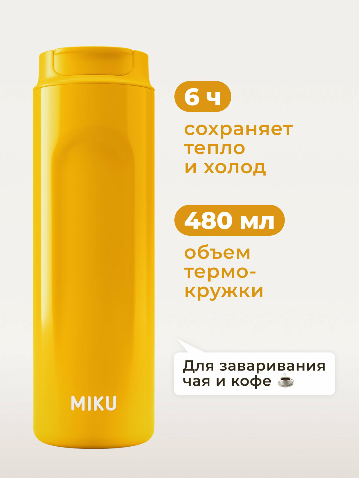 Термокружка MIKU объемом 480 мл сохраняет температуру горячих и холодных напитков до 6 часов.
