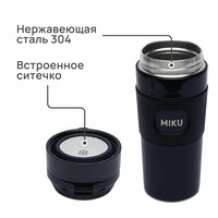 Термокружка MIKU объемом 450 мл сохраняет температуру горячих и холодных напитков до 8 часов. Станет отличным подарком для любителей свежезаваренных чая или кофе. Разные цвета моделей позволяют подобрать вариант и для мужчин, и для женщин.