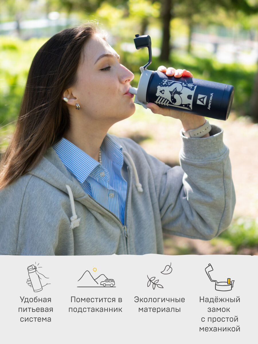 Термокружка Арктика объемом 0,5 литра - это идеальное решение для тех, кто ценит горячие и холодные напитки в любое время и в любом месте. Удобная питьевая система с крышкой, оснащенной замком-фиксатором, позволяет пить из термоса на ходу с помощью специального носика для питья, что делает его идеальным выбором для спортсменов, велосипедистов, студентов или школьников.