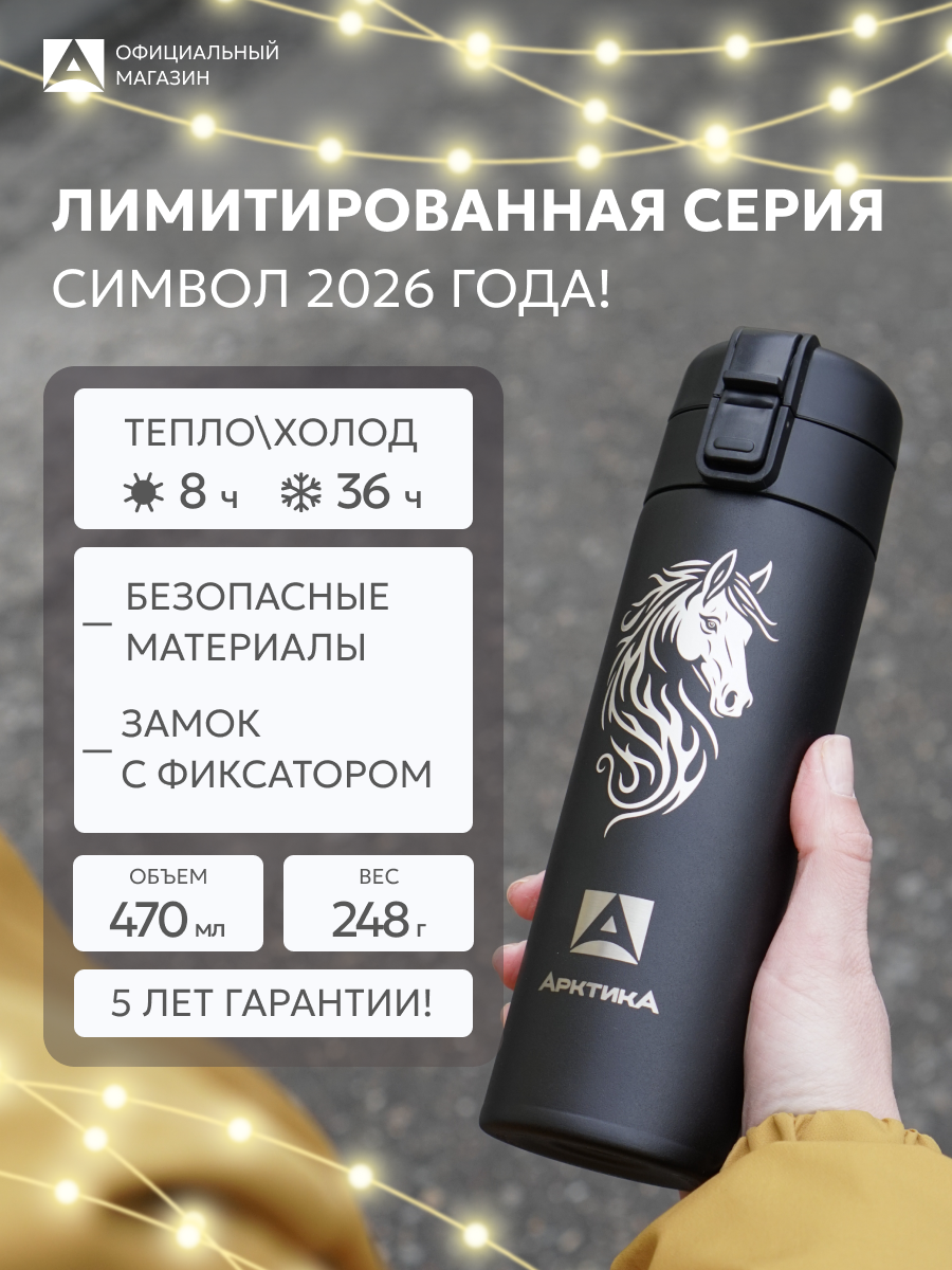 Термокружка с рисунком Арктика 703 сталь 0,47 л символ года 2026 Лошадь: сравнение цен, характеристики, фото, актуальное наличие и цены.