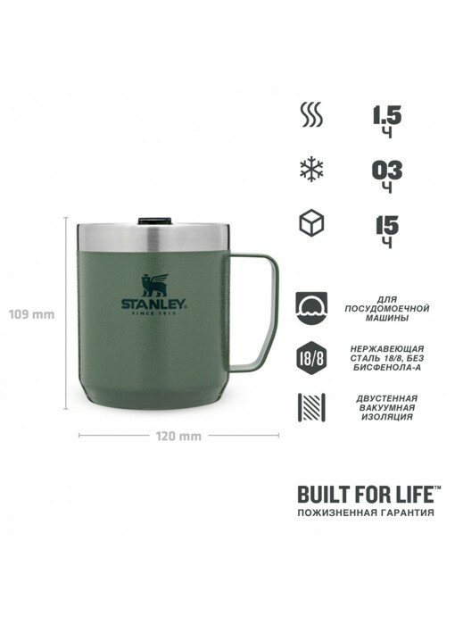 Термокружка STANLEY Classic Legendary Camp Mug, с ручкой, 370 мл, зелёная: сравнение цен, характеристики, фото, актуальное наличие и цены.