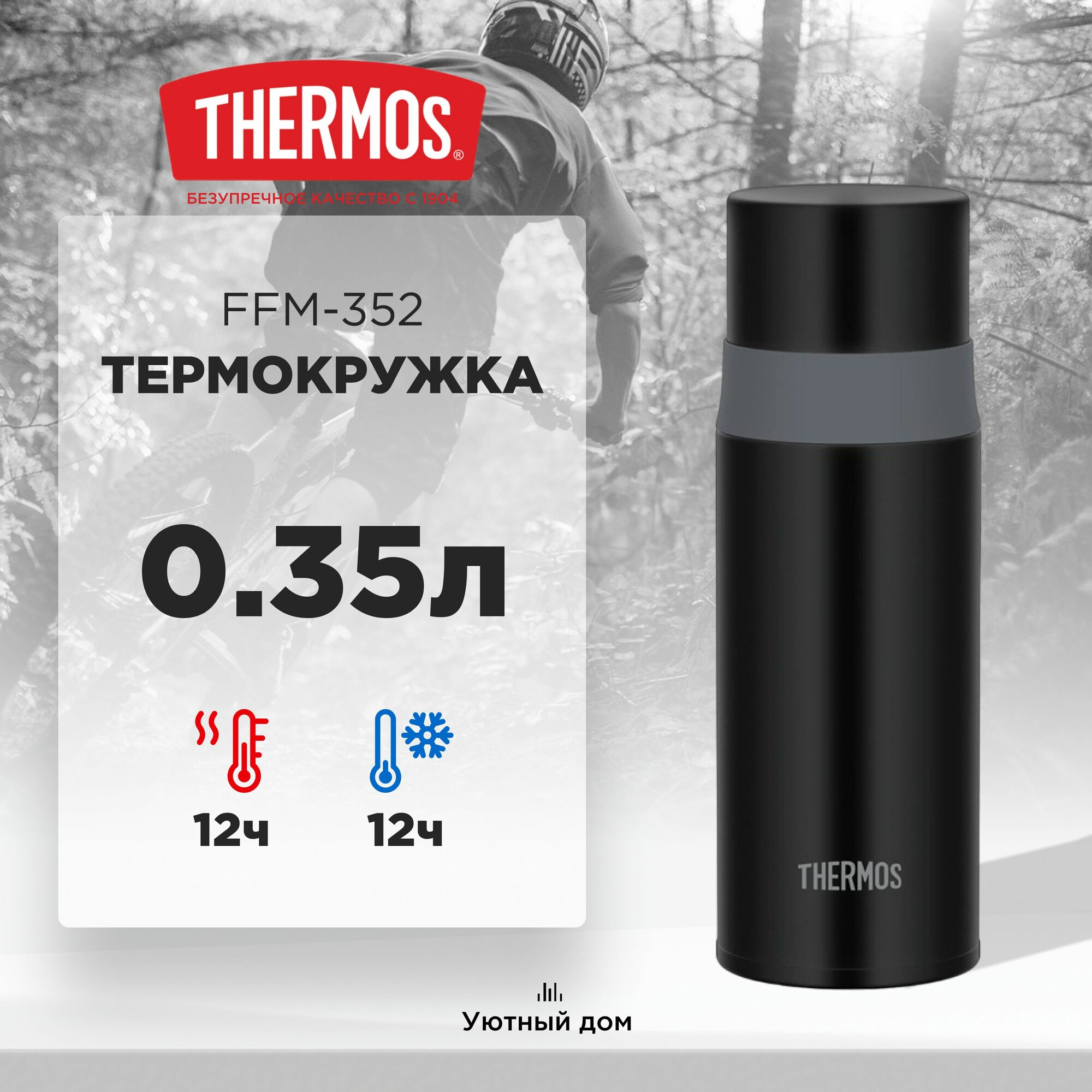 Компактный термос FFM-352 STB – современная версия классического термоса в сочетании с лучшими функциями термокружки сити-формата. Вне зависимости от температуры окружающей среды он сохраняет напитки горячими или холодными не менее 12 часов. Режим длительного удержания температуры напитков поддерживается за счет технологии вакуумной изоляции и высококачественной пищевой нержавеющей стали. Материалы, из которых изготовлен термос FFM, отличаются термостойкостью и устойчивостью к механическим повреждениям, не выделяют и не поглощают посторонние запахи, практичны и гигиеничны, абсолютно безопасны для здоровья, не содержат бисфенол А (BPA free). Термос соответствует Международному стандарту качества EN12546-1:2000. Термос для напитков серии FFM комфортен в использовании: продуманная конструкция крышки-пробки позволяет его быстро открывать нажатием на кнопку, расположенную на верхней крышке, при этом она откидывается и автоматические фиксируется в открытом положении. Пить можно непосредственно из термоса благодаря удобному поильнику, не откручивая пробку при каждом использовании, а угостить напитком собеседника можно, используя крышку-чашку. За счёт компактных размеров термокружка совместима с большинством кофемашин, а также идеально подходит для размещения в автомобильных подстаканниках или велосипедных держателях. Благодаря своему малому весу, термокружка не утяжелит портфель, рюкзак или дамскую сумочку, при этом можно не опасаться, что напиток прольётся: в крышке-пробке предусмотрена система дополнительной фиксации, который делает термокружку абсолютно герметичной и исключает ее случайное открывание. Термокружка THERMOS® FFM-352 STB оригинального графитового цвета станет великолепным стильным подарком для ценителей изящества, практичности и функциональности. характеристикиобъем 0,35 лВес изделия 0,18 кгВремя сохранения тепла 12 чВремя сохранения холода 12 чМетод изоляции вакуумРазмер высота - 18,5 смдиаметр горлышка - 4,2 смдиаметр дна - 6,5 смТип крышки крышка-чашкаТип пробки винтовая, с откидным механизмомТип покрытия матовоеЦвет чёрныйМатериалы корпус – нержавеющая сталь 18/8 AISI 304 Stainless Steelколба – нержавеющая сталь 18/8 AISI 304 Stainless Steelкрышка-пробка – пищевой пластикпрокладки-уплотнители – пищевой силиконГарантия 5 летСтрана-изготовитель Малайзия