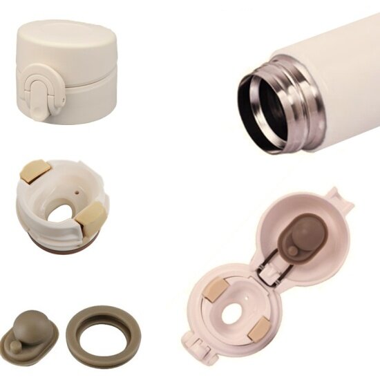 Конструкция крышки-пробки разработана с возможностью управления одной рукой, которая позволяет пользоваться термокружкой и пить во время движения. Верхняя крышка автоматически откидывается на 220 градусов при лёгком нажатии на кнопку, фиксируется в открытом положении и не опрокидывается при питье. Термокружка оснащена специальным кольцом-фиксатором, которое предотвращает самопроизвольное открывание, что делает её безопасной для хранения в сумке или рюкзаке, а благодаря особо утончённой форме термокружка не займет много места.