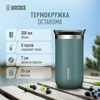 Термокружка вакуумная Wacaco Octaroma с вакуумной изоляцией, из нержавеющей стали с двойными стенками и герметичной крышкой, 300 мл, цвет зеленый, WCCOCTB: сравнение цен, характеристики, фото, актуальное наличие и цены.