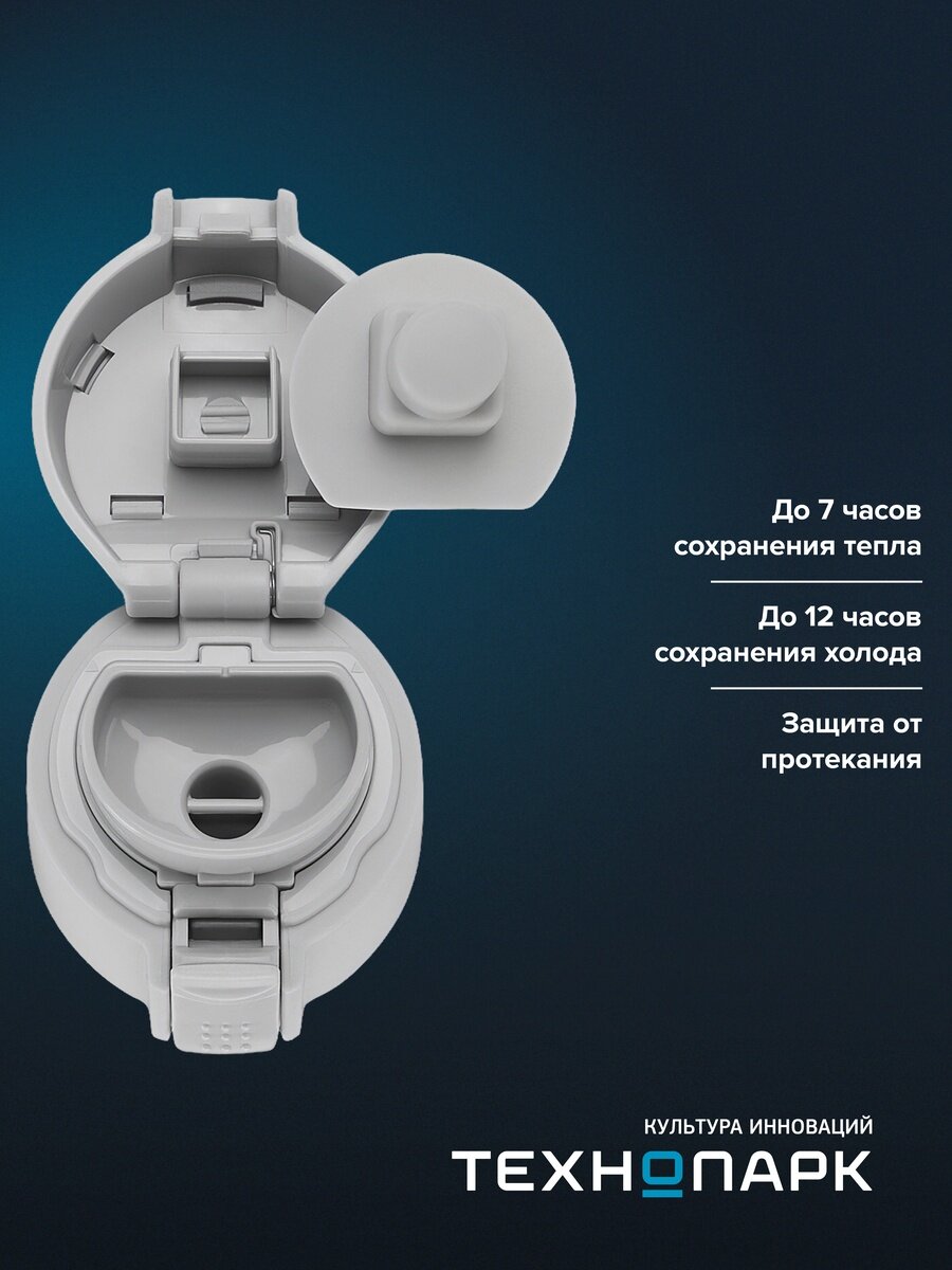 вакуумный, кнопка-клапан, крышка-чашка, мытье в посудомоечной машине, непроливайка, нескользящее дно, носик для питья, отверстие для питья в крышке