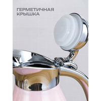 Особенностью термокувшина является его вакуумный дизайн, который позволяет сохранять температуру напитка дольше, чем в обычных кувшинах. Ручка на корпусе облегчает использование термокувшина, делая его удобным для переноски.