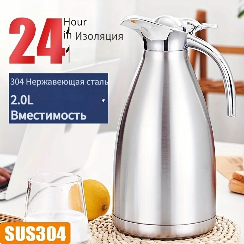 Купить Термокувшин с вакуумной изоляцией 2 литра для чая и кофе, сохраняет температуру 24 часа, удобное управление одной рукой, нержавеющая сталь, антискользящее дно с доставкой по всей России. Термокувшин с вакуумной изоляцией 2 литра для чая и кофе, сохраняет температуру 24 часа, удобное управление одной рукой, нержавеющая сталь, антискользящее дно: сравнение цен, характеристики, фото, актуальное наличие и цены.