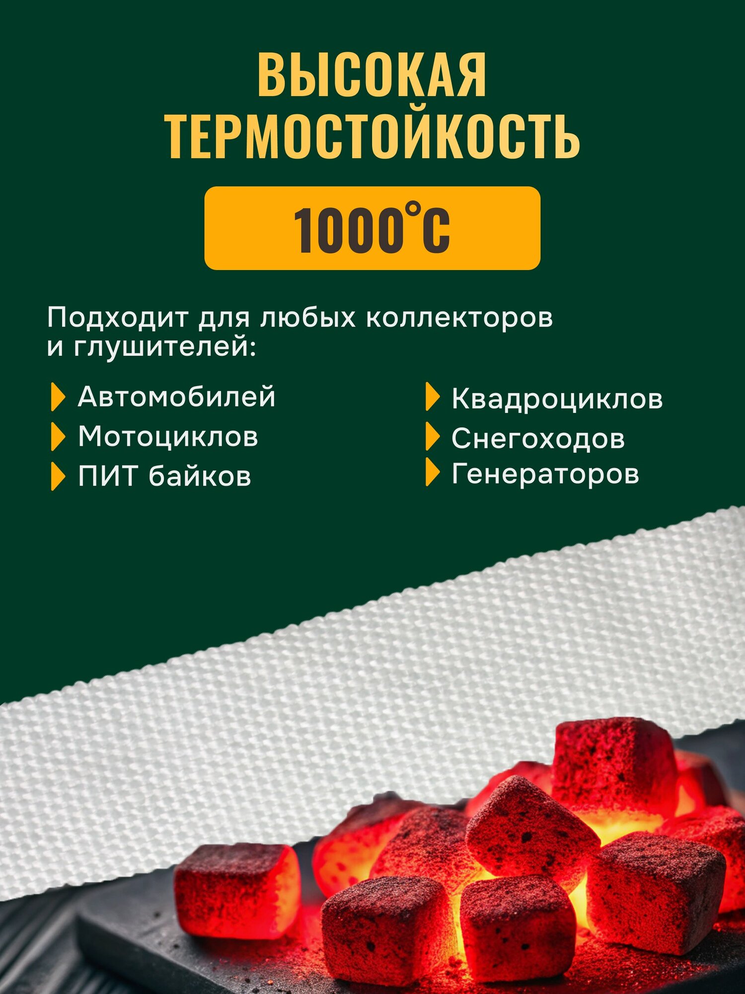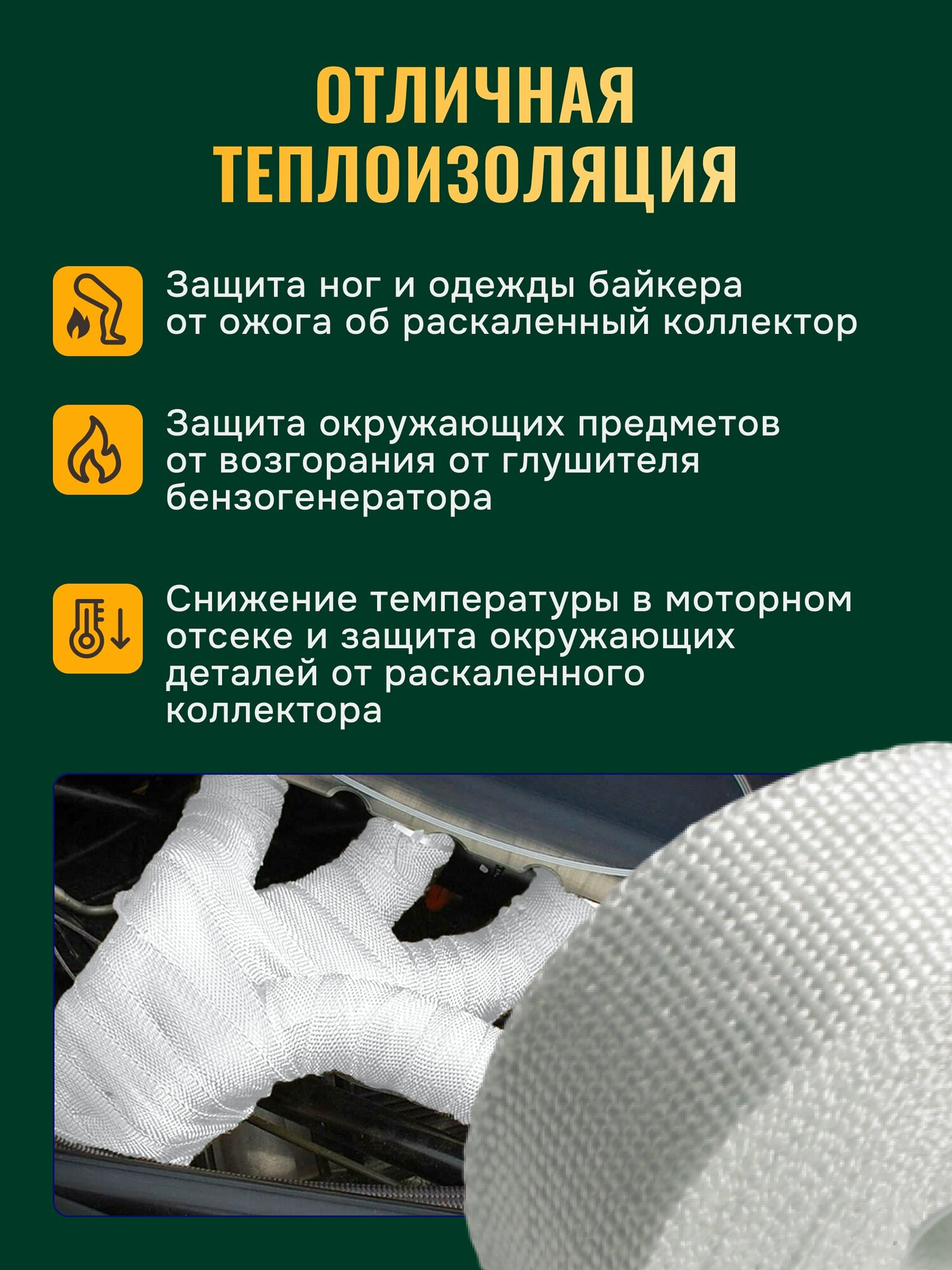 Термолента для глушителя жаростойкая Белая, 10м х 50мм, + 8 стяжек и перчатки: сравнение цен, характеристики, фото, актуальное наличие и цены.