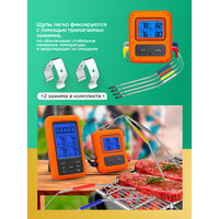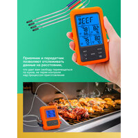 Кулинарный термометр TS-TP40-A предназначен для точного контроля температуры при приготовлении блюд. Выполненный из высококачественного АБС-пластика и нержавеющей стали, этот термометр сочетает прочность и долговечность, поддерживая надежную работу в самых разнообразных условиях на кухне. Максимальная температура, которую может измерять электрический кухонный градусник составляет 250 °С, что делает его подходящим для приготовления широкого спектра блюд, включая мясо, выпечку и десерты. В комплект входит 4 щупа, что позволяет одновременно следить за температурой в нескольких точках или контролировать разные блюда. Это особенно удобно при приготовлении сложных рецептов, требующих одновременной готовки нескольких компонентов. Щупы легко фиксируются с помощью прилагаемых зажимов, что гарантирует стабильное измерение температуры и предотвращает их смещение. Приемник и передатчик позволяют отслеживать данные на расстоянии, что дает возможность свободно перемещаться по кухне, не теряя контроля над процессом приготовления. Удобное управление и интуитивно понятный интерфейс делают бытовую технику простой в использовании даже для начинающих кулинаров. Гаджет питается от четырех батареек типа AAA, обеспечивая долгую автономную работу. Такой товар для кухни незаменим для блюд и напитков, которые требуют определенной температуры.