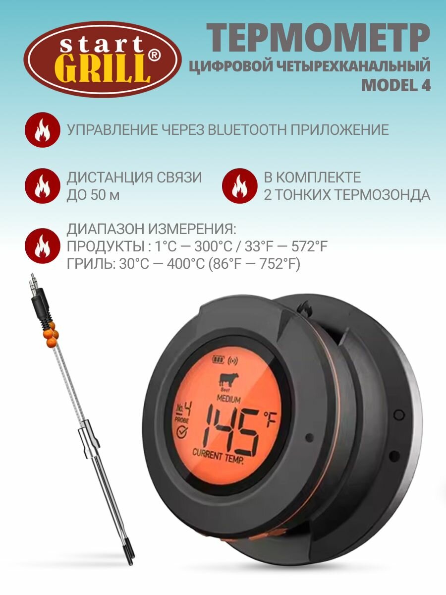 Купить Термометр кулинарный цифровой Model 4, четырехканальный, 2 термощупа, Bluetooth с доставкой по всей России. Термометр кулинарный цифровой Model 4, четырехканальный, 2 термощупа, Bluetooth: сравнение цен, характеристики, фото, актуальное наличие и цены.