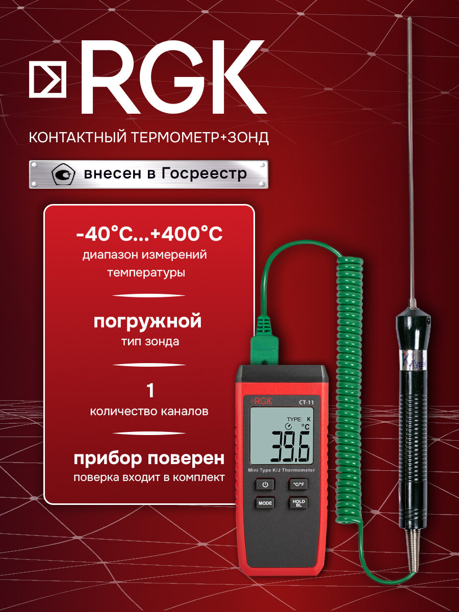 Купить Термометр RGK CT-11 с погружным зондом температуры TR-10W с поверкой с доставкой по всей России. Термометр RGK CT-11 с погружным зондом температуры TR-10W с поверкой: сравнение цен, характеристики, фото, актуальное наличие и цены.