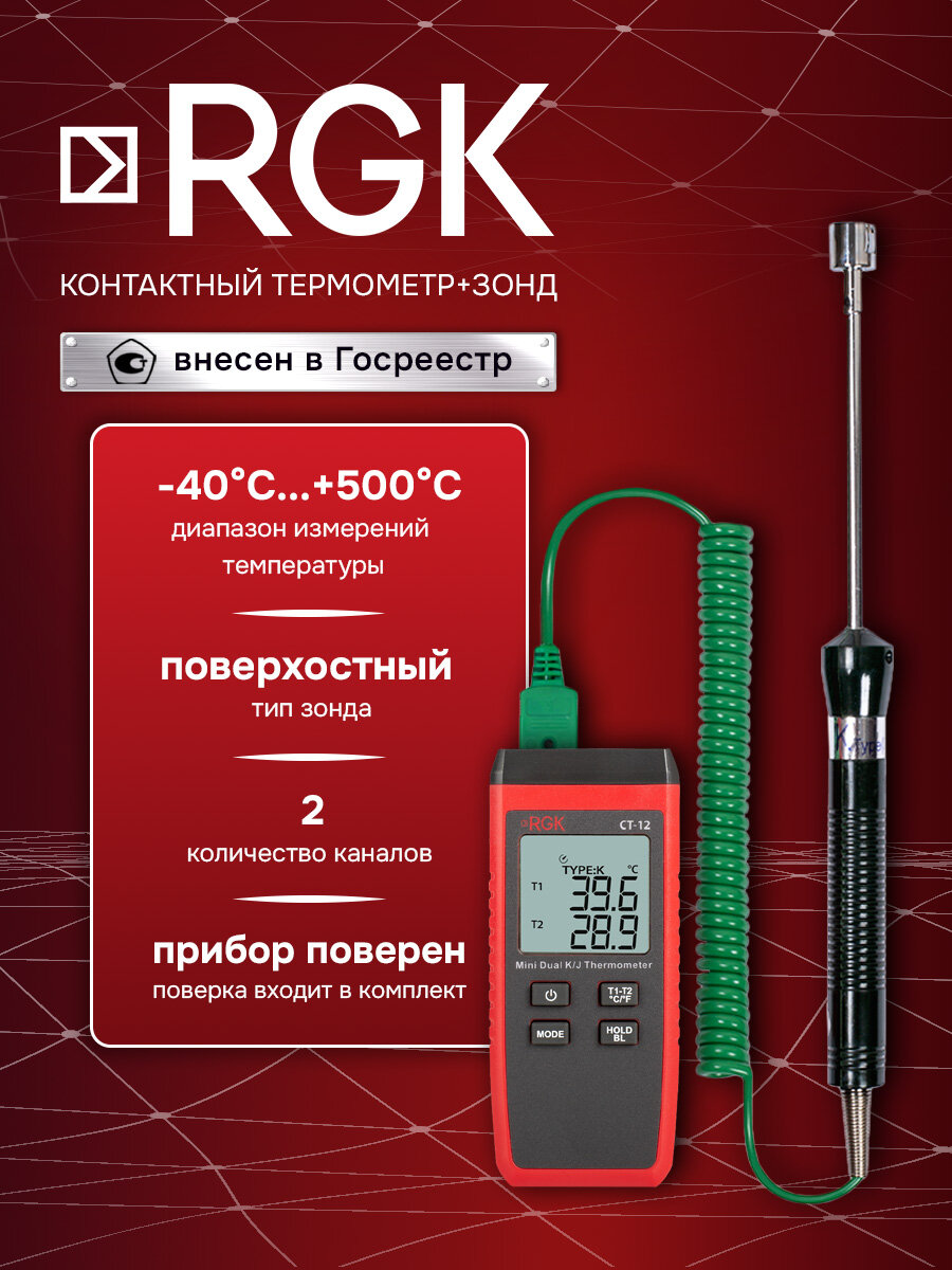 Купить Термометр RGK CT-12 с поверхностным зондом TR-10S с поверкой с доставкой по всей России. Термометр RGK CT-12 с поверхностным зондом TR-10S с поверкой: сравнение цен, характеристики, фото, актуальное наличие и цены.