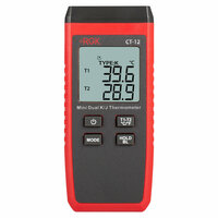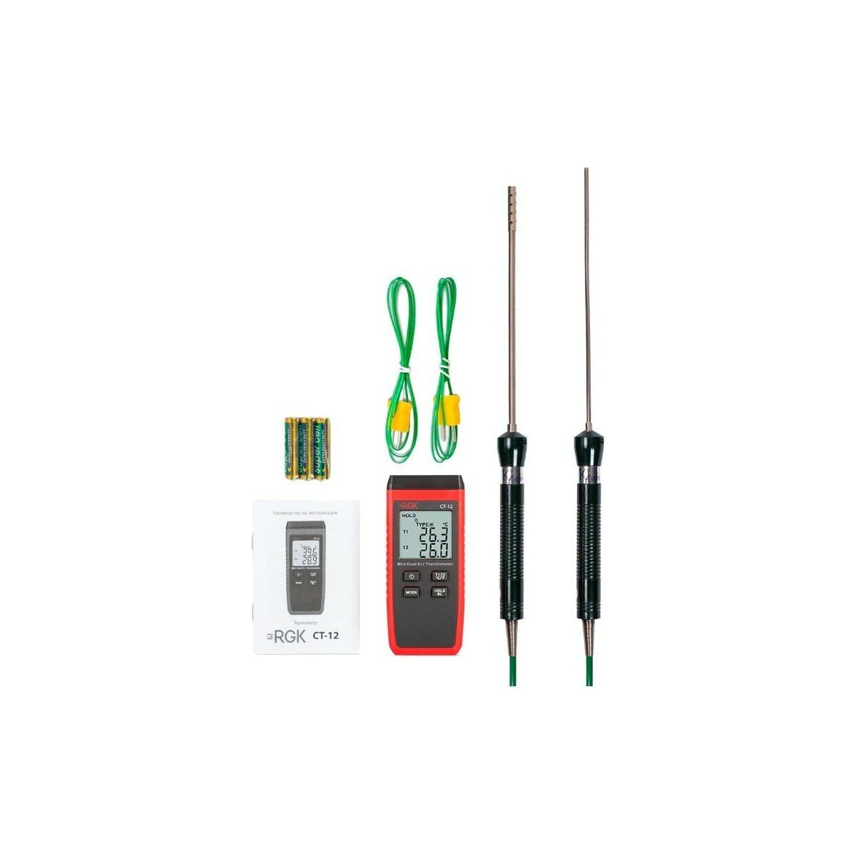 | Дополнительная информация | Госреестр № 80519-20; совместимость с зондами и термопарами J/K; 2 гнезда для подключения выносных датчиков с функцией определения разности между каналами; подсветка экрана, отображение пиковых значений, расчет средней температуры, фиксация результатов кнопкой HOLD, шаг шкалы 0.1 °С, выбор единиц измерения °C/°F, диапазон измерений температуры: для типа "К" - от -50 до +1300 °С, для типа "J" - от -50 до +1200 °С, погрешность измерений не более ± 1.5 °C, габаритные размеры: 120x53x28 мм, вес 82 г; зонд температуры воздуха: тип "К", диапазон измерений температуры - от -40 до +200 °С, общая длина (без кабеля) - 305 мм, длина металлической части - 170 мм, диаметр металлической части - 5 мм, длина наконечника зонда - 32 мм, диаметр наконечника зонда - 6 мм, длина кабеля - от 450 до 1000 мм (при нормальном растяжении), вес 105 г; погружной зонд: тип "К", диапазон измерений температуры - от -40 до +400 °С, общая длина (без кабеля) - 315 мм, длина металлической части - 180 мм, диаметр металлической части - 3.2 мм, длина кабеля - от 450 до 1000 мм (при нормальном растяжении), вес 90 г; комплектация: термометр CT-12, термопара TR-01S - 2 шт., зонд температуры воздуха TR-10A, погружной зонд температуры TR-10W, батарейка ААА - 3 шт., руководство по эксплуатации |