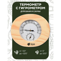 Вашему вниманию представляется уникальный термометр с гигрометром в овальном деревянном корпусе от бренда "Банные штучки", размер 16х14х3 см, который станет неотъемлемой частью вашей бани или сауны. Диапазон измерения температуры воздуха от 0 до +120 градусов Цельсия, влажности от 0 до 100%. Градусник не содержит ртуть и работает от батареек. Этот стильный термометр - настоящая гордость любой парилки. У прибора четкие деления и разборчивые цифры.