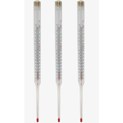 Набор из 3-х штук. Термометр технический жидкостный. Применяется для измерения температуры в технических воздушно-парогазосиловых установках, трубопроводах и прочих местах. Термометры сертифицированы, поверены, с паспортом. Межповерочный интервал 3 года. Характеристики: Российская поверка Диапазон измерения t 0 … +160°C Длина L 240мм + 66 мм Цена дел. шк, 2°С Термометрическая жидкость керосин Особенности: Эти измерительные приборы нужны для определения точной температуры рабочей среды (газа или жидкости), идущей по воздушно-паровогазовой установке или по трубопроводу. Легкость в эксплуатации, точность измерений, долговечность — вот те свойства, которые сделали термометры технические ТТЖ востребованными во всех сферах современной промышленности. Данный измерительный прибор представляет собой капиллярную трубку, выполненную из высокопрочного стекла, с термометрической жидкостью и шкалой. Термометр технический ТТЖ является отличным примером простого и поэтому надежного в использовании прибора. Паспорт в тубусе