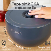 Купить Термомиска с крышкой FITSCH, нержавеющая сталь, нескользящая, 5 л серая с доставкой по всей России. Термомиска с крышкой FITSCH, нержавеющая сталь, нескользящая, 5 л серая: сравнение цен, характеристики, фото, актуальное наличие и цены.