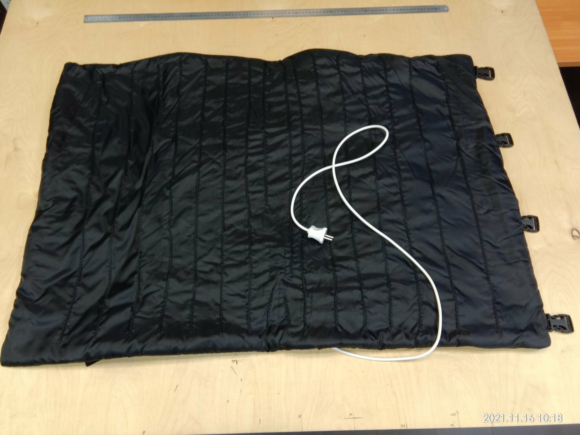 Одеяло для подогрева газового баллона на 50л (или 38л композитного газового баллона). Работает от сети 220в, греет до 45 градусов и отключается (при остывании, включается снова - срабатывает датчик). Оборачивается вокруг баллона и застегивается с помощью фастексов (ремни и застежки), может использоваться в сцепке с аналогичными одеялами (сделать его очень длинным). Изготавливается из ткани с водоотталкивающей пропиткой и толстым синтепоном.