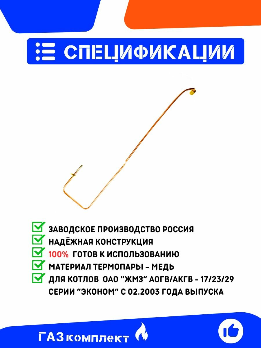 Термопара для газовых котлов ЖМЗ АОГВ, АКГВ-17/23/29 с 02.2003 года. выпуска, серии «Эконом», производства ОАО "Жуковский машиностроительный завод"