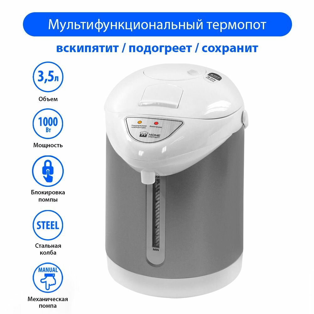 Термопот HOME ELEMENT HE-TP624 белый жемчуг 3,5 л: сравнение цен, характеристики, фото, актуальное наличие и цены.
