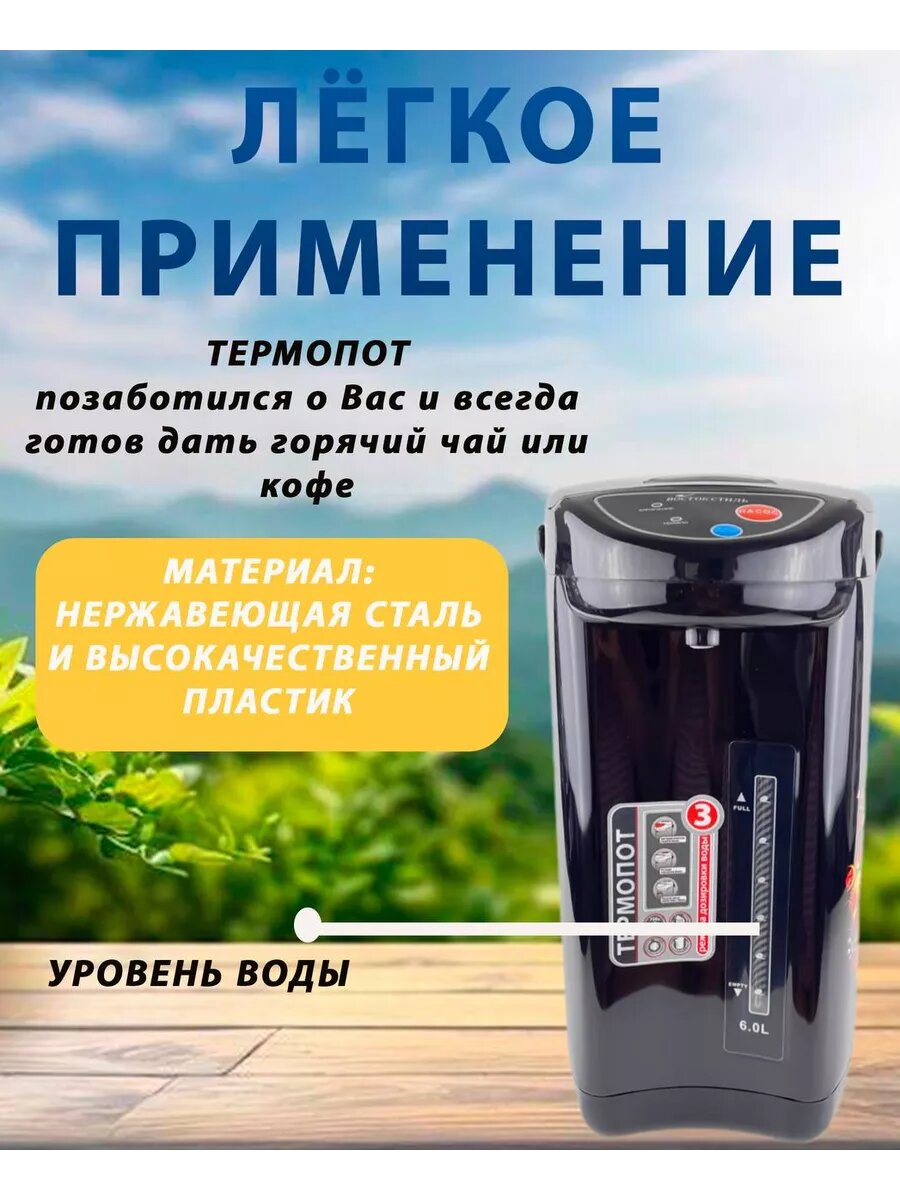 Купить Термопот электрический 6,0 л черный с доставкой по всей России. Термопот электрический 6,0 л черный: сравнение цен, характеристики, фото, актуальное наличие и цены.