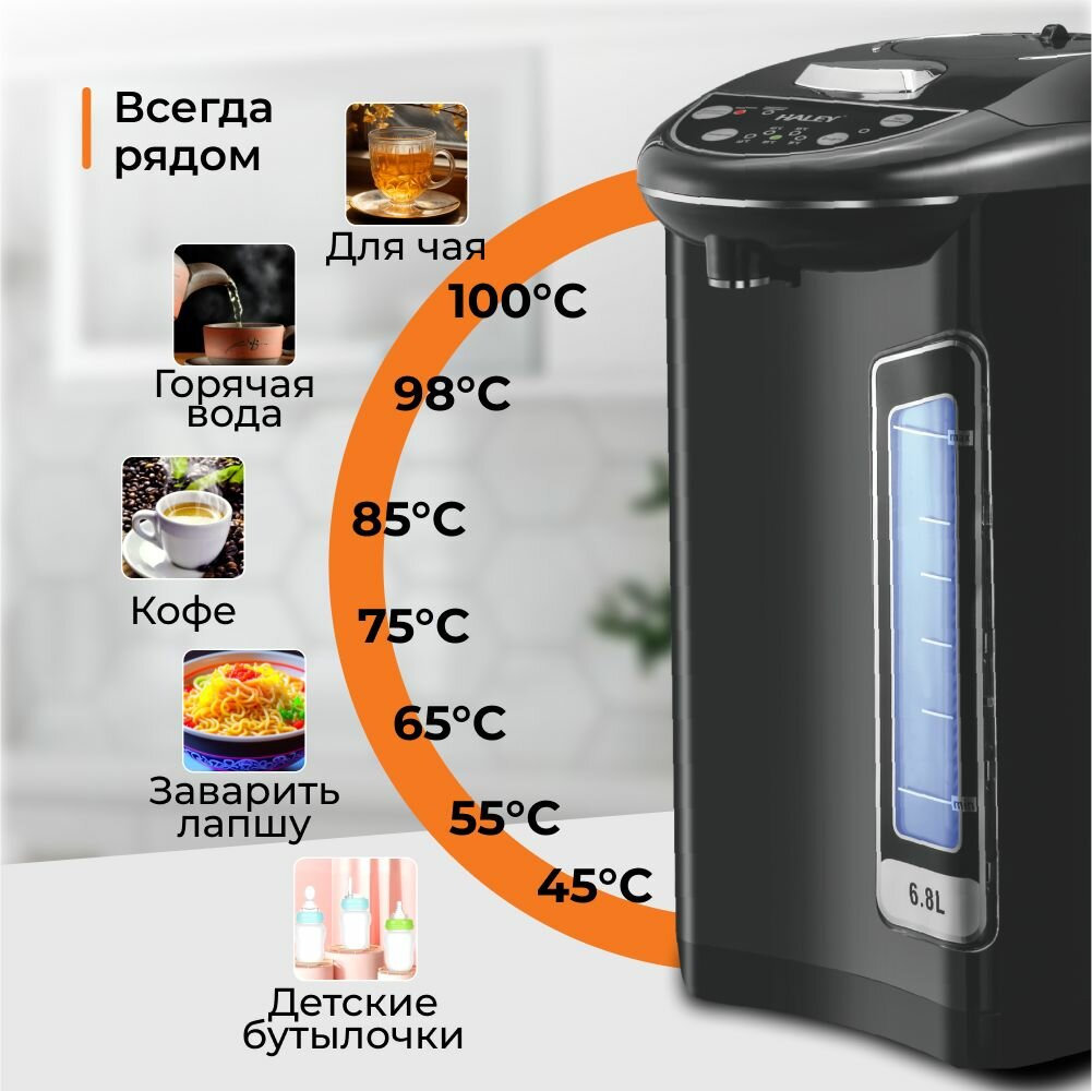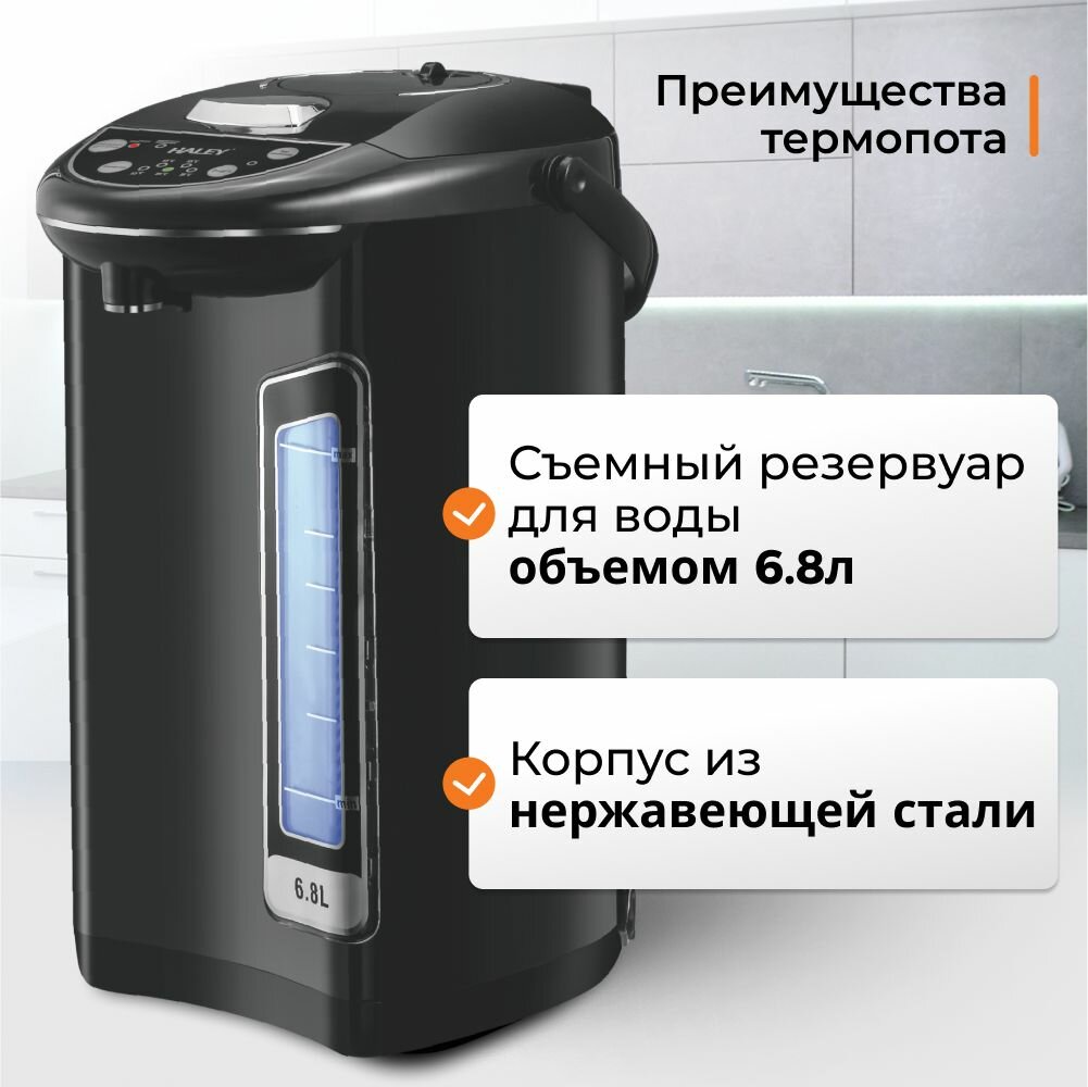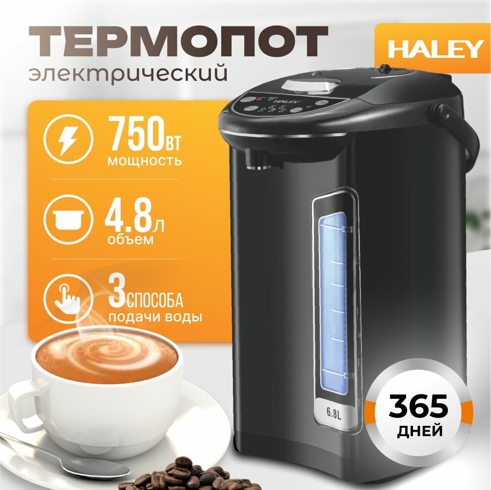 Термопот электрический HALEY-6806, 6.8 литров,750 Вт, 304 стали, автоматической подачей воды и электронасосом: сравнение цен, характеристики, фото, актуальное наличие и цены.