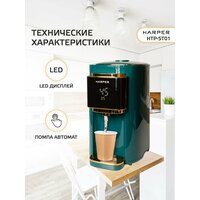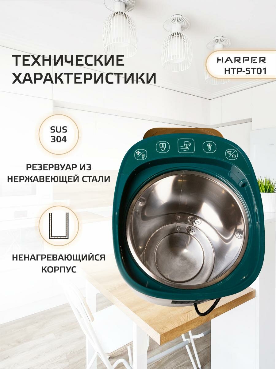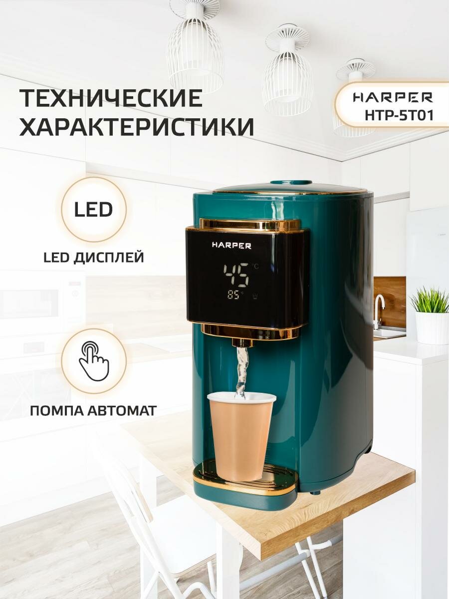 Термопот Harper HTP-5T01 – это вместительный, функциональный, а главное, очень полезный прибор для любой кухни и офиса. Электрический Термопот обеспечивает наличие большого запаса воды нужной температуры. Harper HTP-5T01 поддерживает сразу несколько режимов работы: автоматическое кипячение (при обнаружении долива воды), эко-режим (догрев до нужной температуры без кипячения), режим термоса (без нагрева, но с работающей помпой) и ускоренное охлаждение (принудительное отведение тепла). Вы можете выставить один из 6 вариантов температуры: от 45 до 95°C.