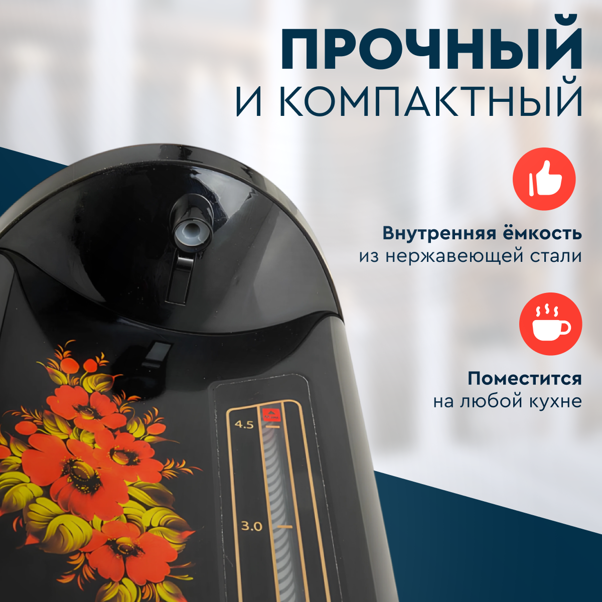 | Особенности | вращение на 360 градусов, двойные стенки, индикатор уровня воды, индикация включения, рисунок на корпусе, съемная крышка |