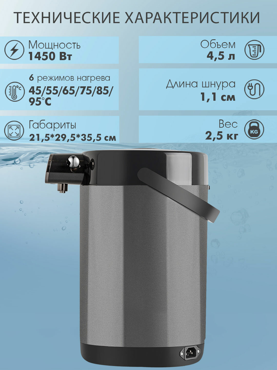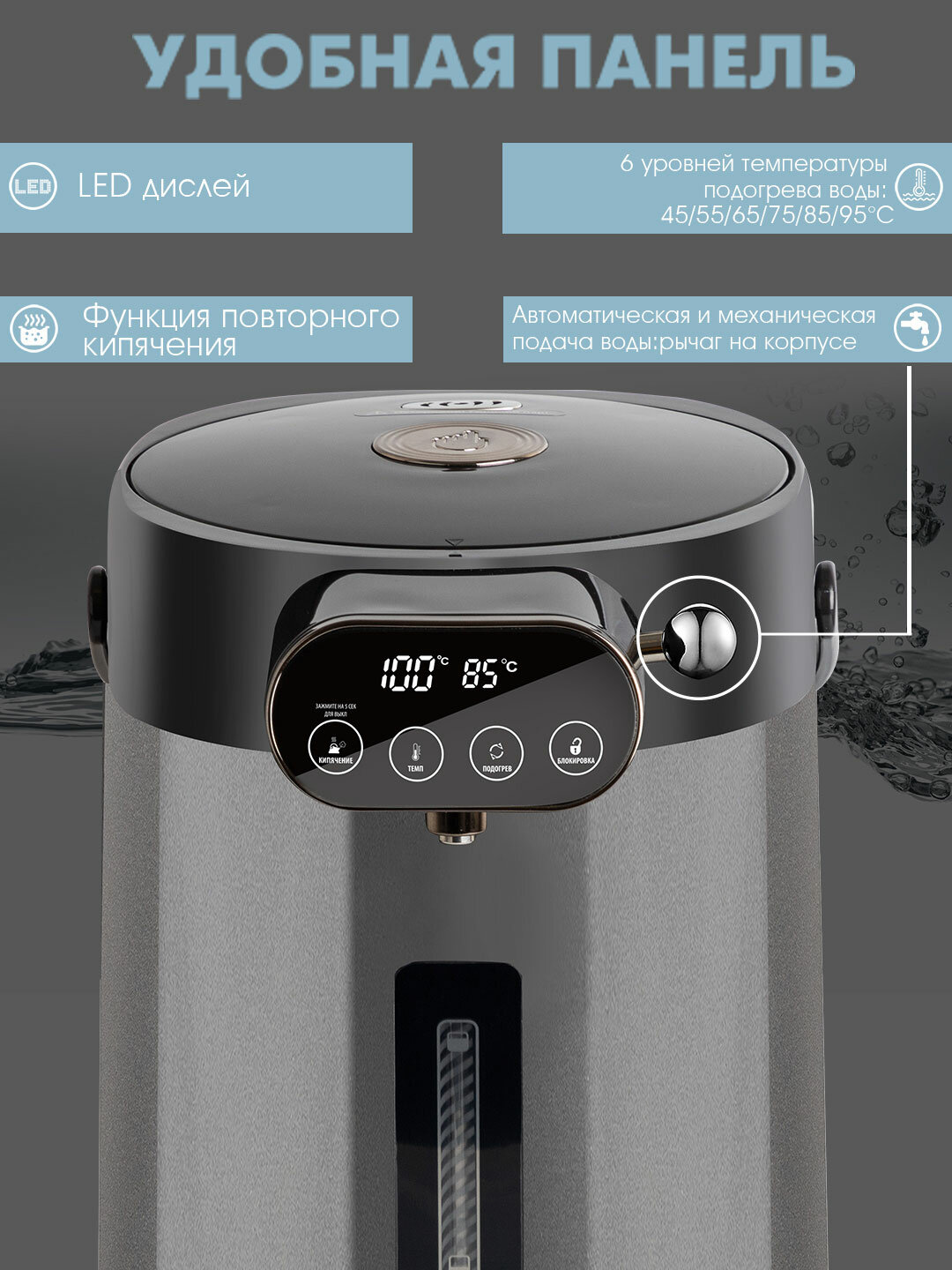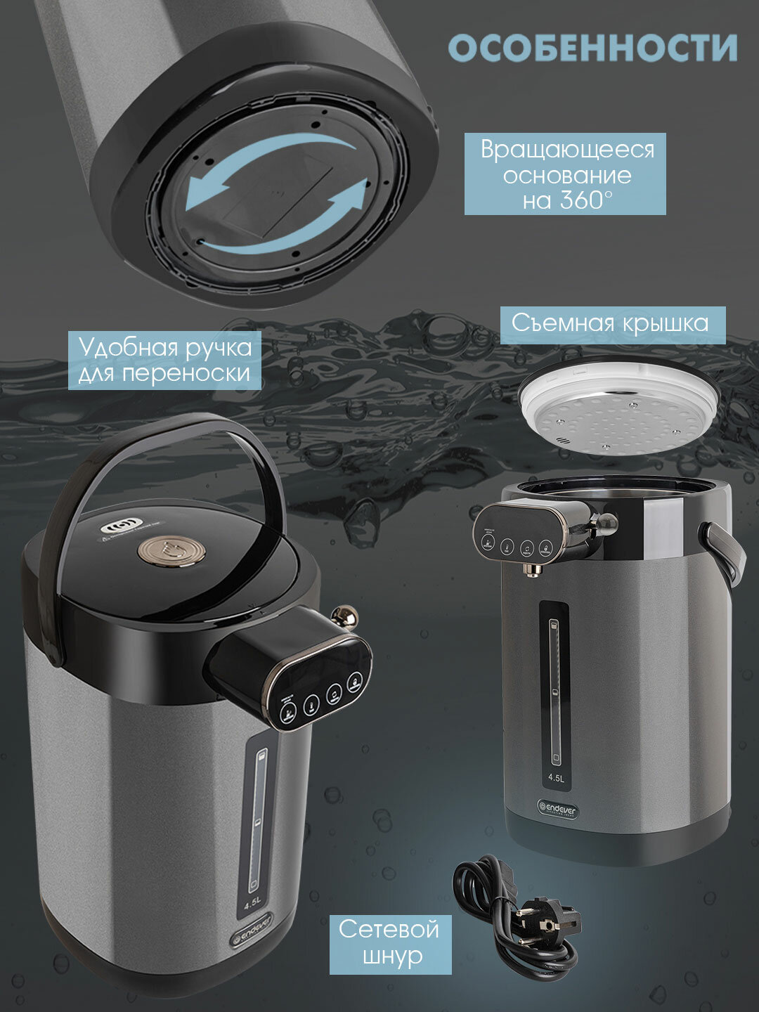 Термопот ENDEVER «Altea-2105», металлический корпус, 6 температурных режимов, 4,5 л: сравнение цен, характеристики, фото, актуальное наличие и цены.