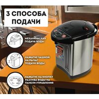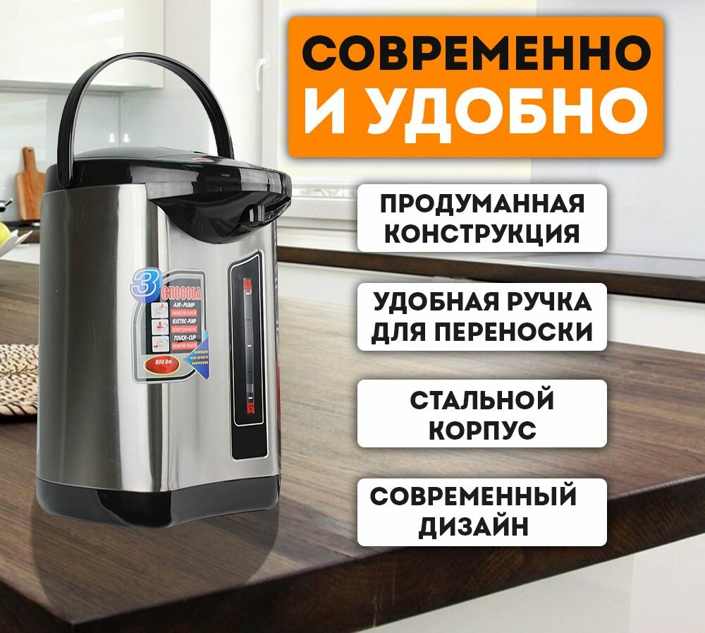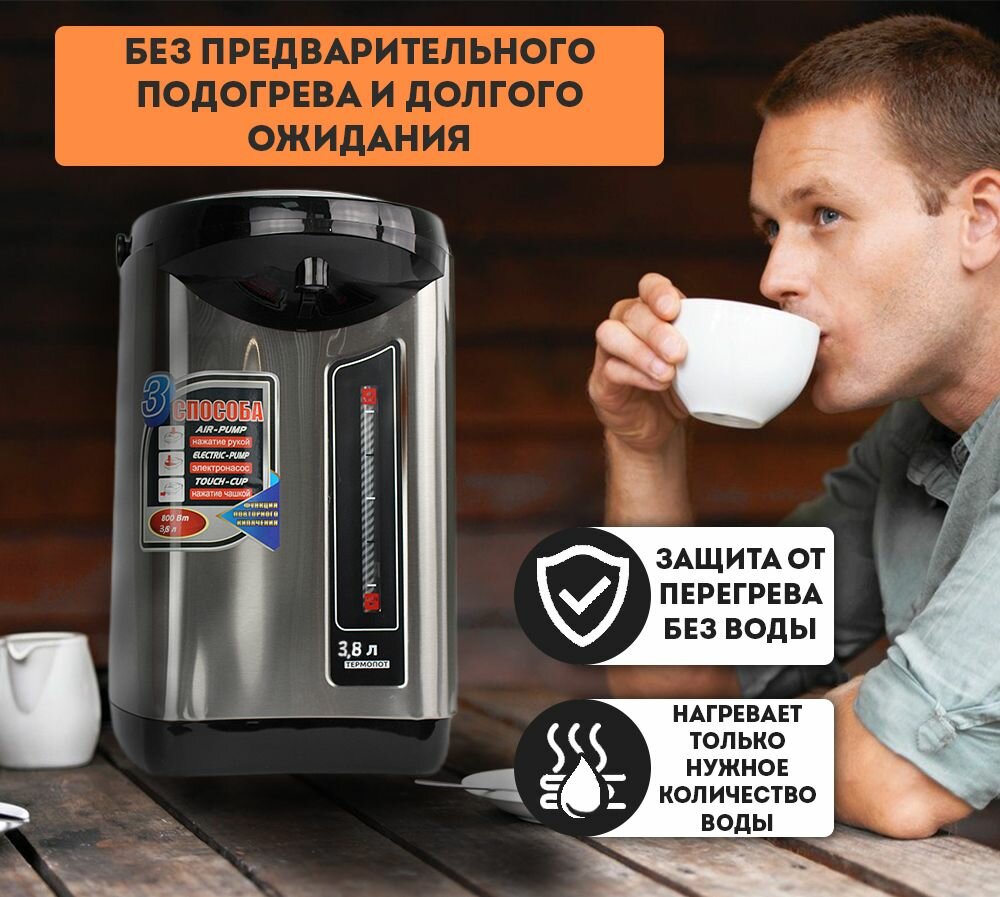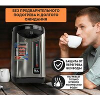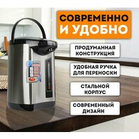 тип: термопот, материал корпуса: металл, объем: 3.80 л, тип нагревательного элемента: закрытый, дополнительные функции: поддержание температуры, особенности: индикатор уровня воды, индикация включения, двойные стенки