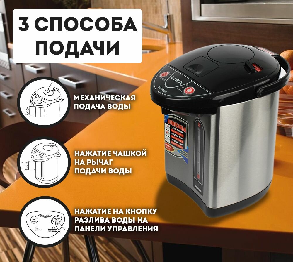Купить Термопот электрический LIRA LR 0401 нержавеющая сталь, объем 3.8л с доставкой по всей России. Термопот электрический LIRA LR 0401 нержавеющая сталь, объем 3.8л: сравнение цен, характеристики, фото, актуальное наличие и цены.