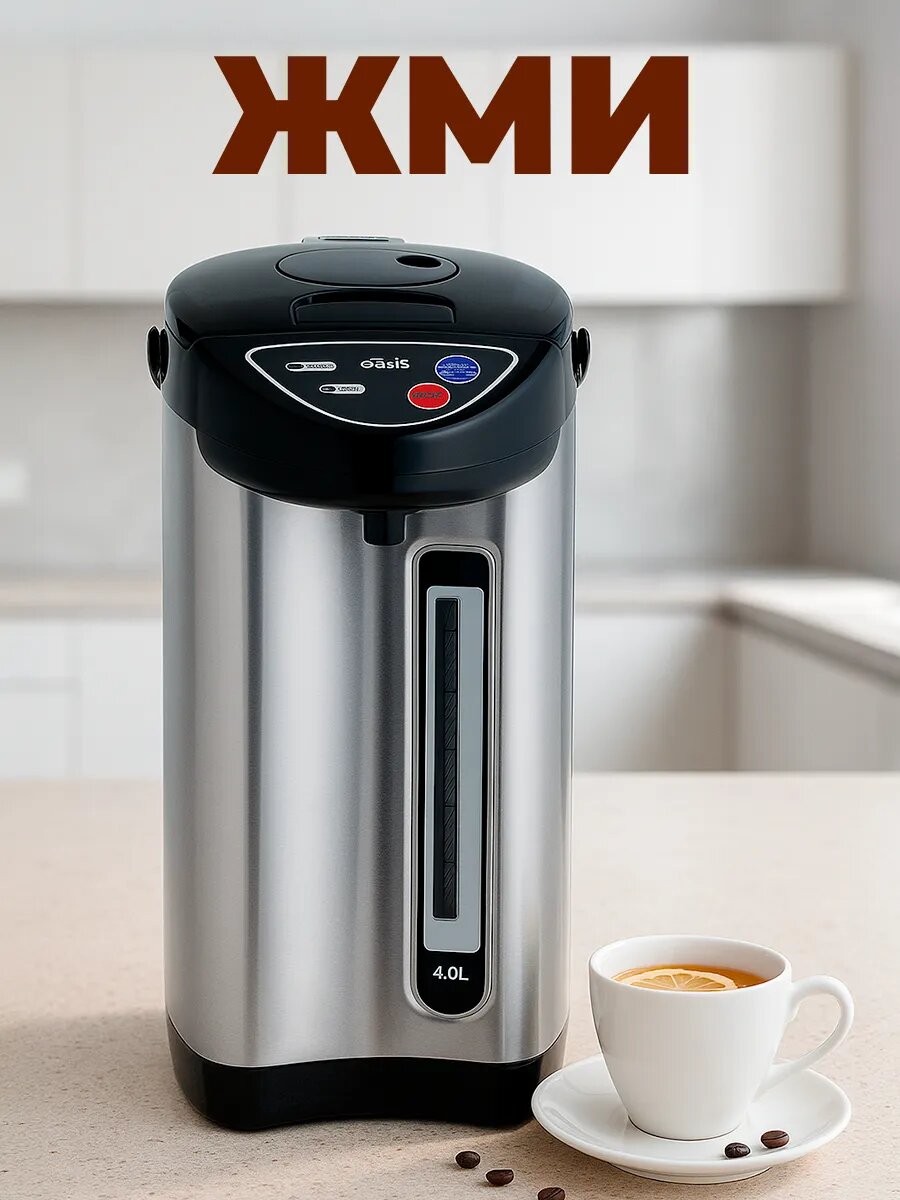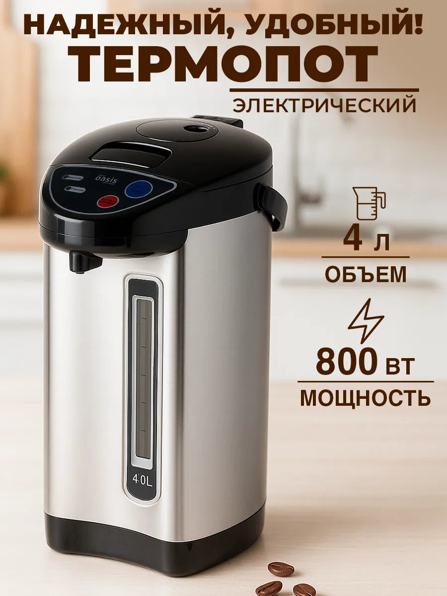 Купить Термопот Oasis, 4л, 800Вт, с насосом, автоотключение, черный, серый с доставкой по всей России. Термопот Oasis, 4л, 800Вт, с насосом, автоотключение, черный, серый: сравнение цен, характеристики, фото, актуальное наличие и цены.