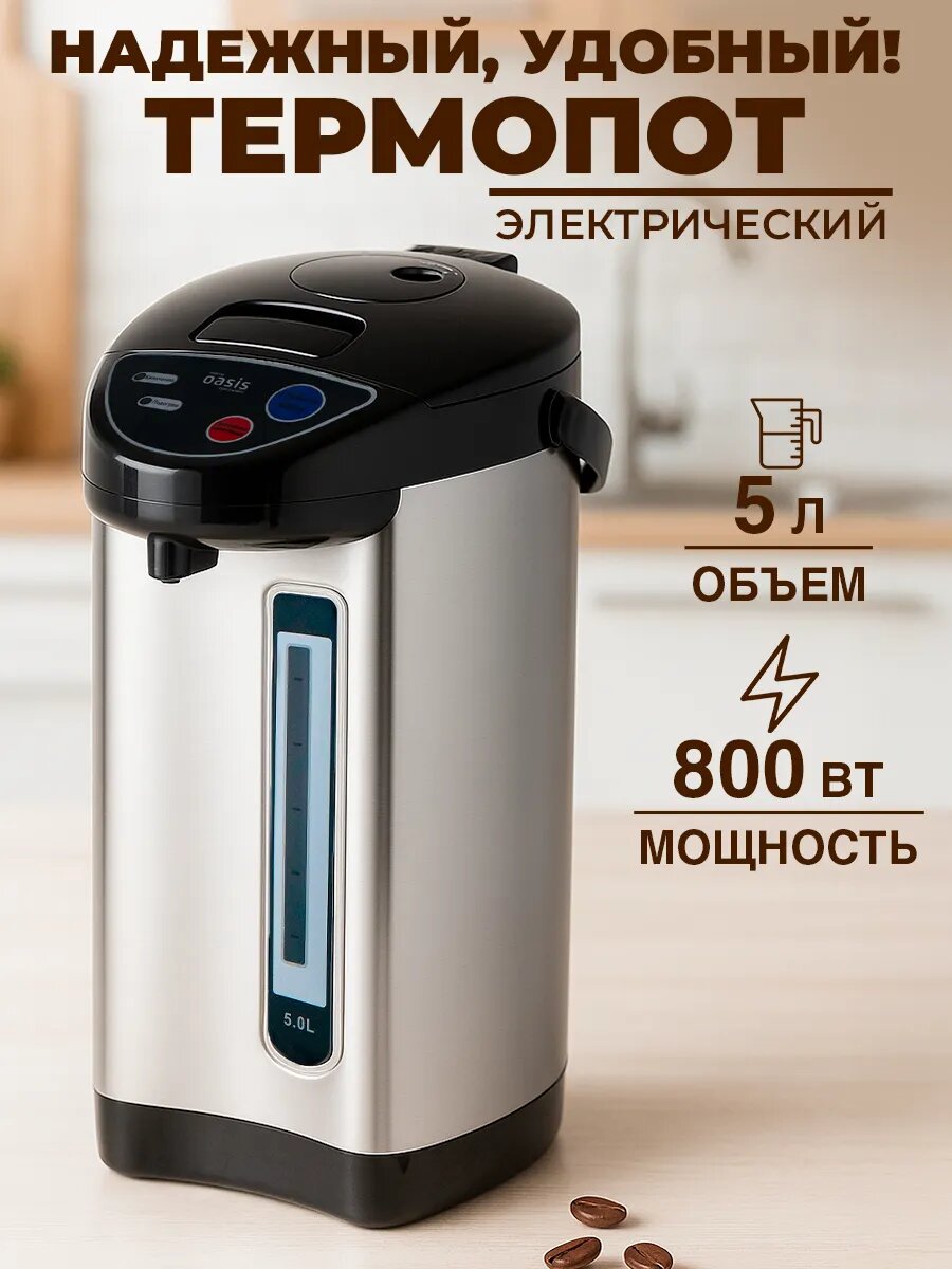 Купить Термопот Oasis, 5 л, с насосом, с автоотключением, черный/серый с доставкой по всей России. Термопот Oasis, 5 л, с насосом, с автоотключением, черный/серый: сравнение цен, характеристики, фото, актуальное наличие и цены.