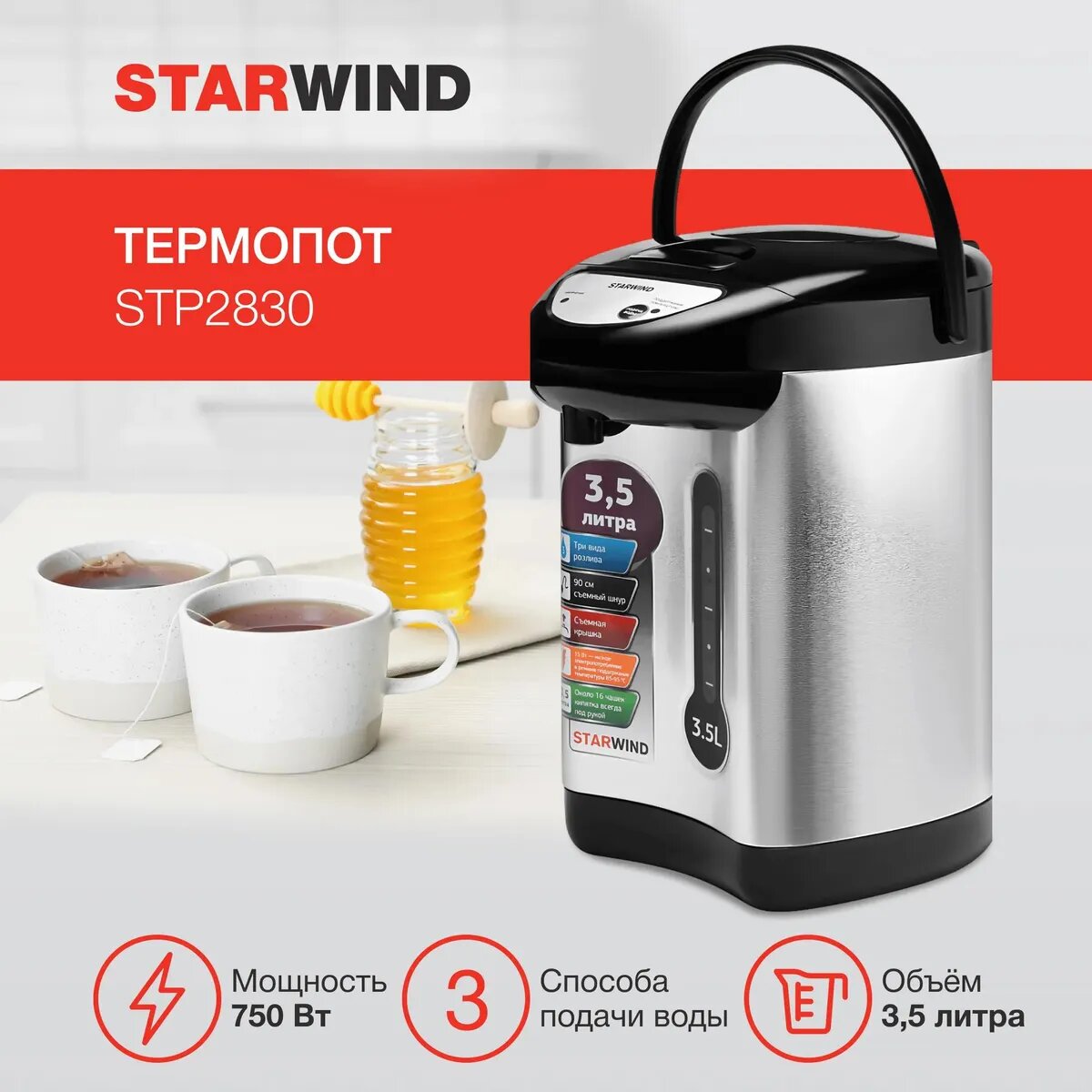 Купить Термопот StarWind STP2830, серебристый и черный с доставкой по всей России. Термопот StarWind STP2830, серебристый и черный: сравнение цен, характеристики, фото, актуальное наличие и цены.