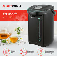 Термопот Starwind STP4181 4л. 750Вт тёмно-серый/бирюзовый, Индикатор уровня воды, Ручка для переноски, Съемная крышка: сравнение цен, характеристики, фото, актуальное наличие и цены.