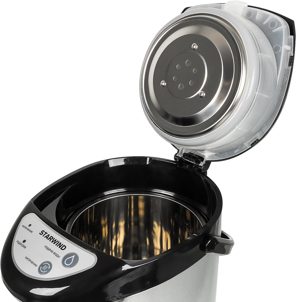 Термопот Starwind STP5181 5л. 750Вт черный/серебристый, Съемная крышка, Функция повторного кипячения: сравнение цен, характеристики, фото, актуальное наличие и цены.