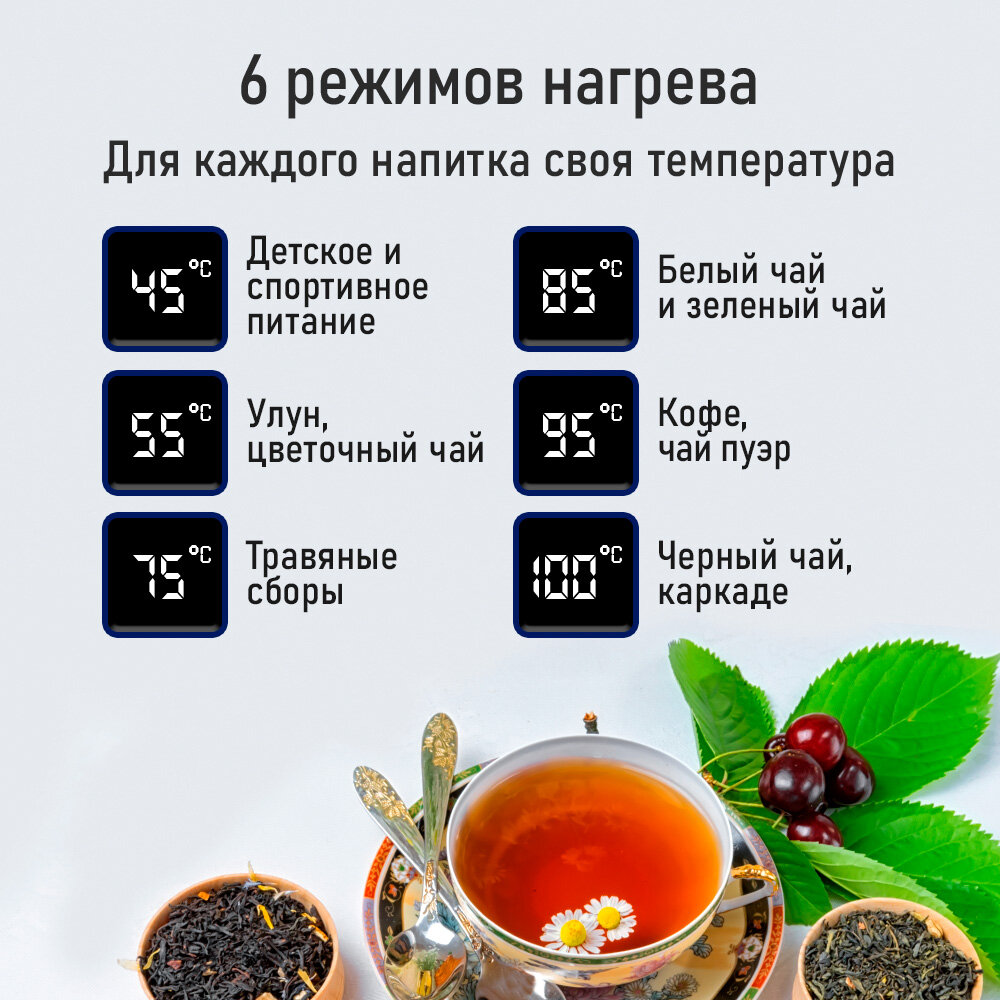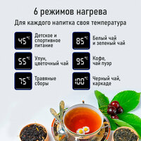 5 режимов поддержания температуры - 45°C/ 55°C/ 75°C/ 85°C/ 95°C. Вес, г: 1890 Высота упаковки, см: 22.100 Глубина упаковки, см: 32.600 Название: Термопот электрический STINGRAY ST-TP3103A 3л, 1500Вт, 6 температурных режимов, LED-дисплей, черный/черный Название модели (для объединения в одну карточку): ST-TP3103A Размер: Длина 32.600 Ширина 27.800 Высота 22.100 Тип: Термопот Ширина упаковки, см: 27.800