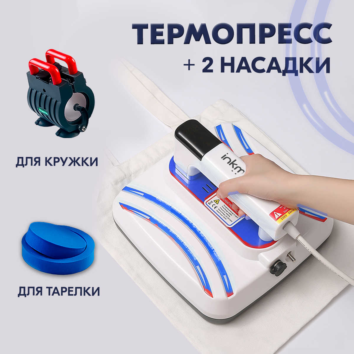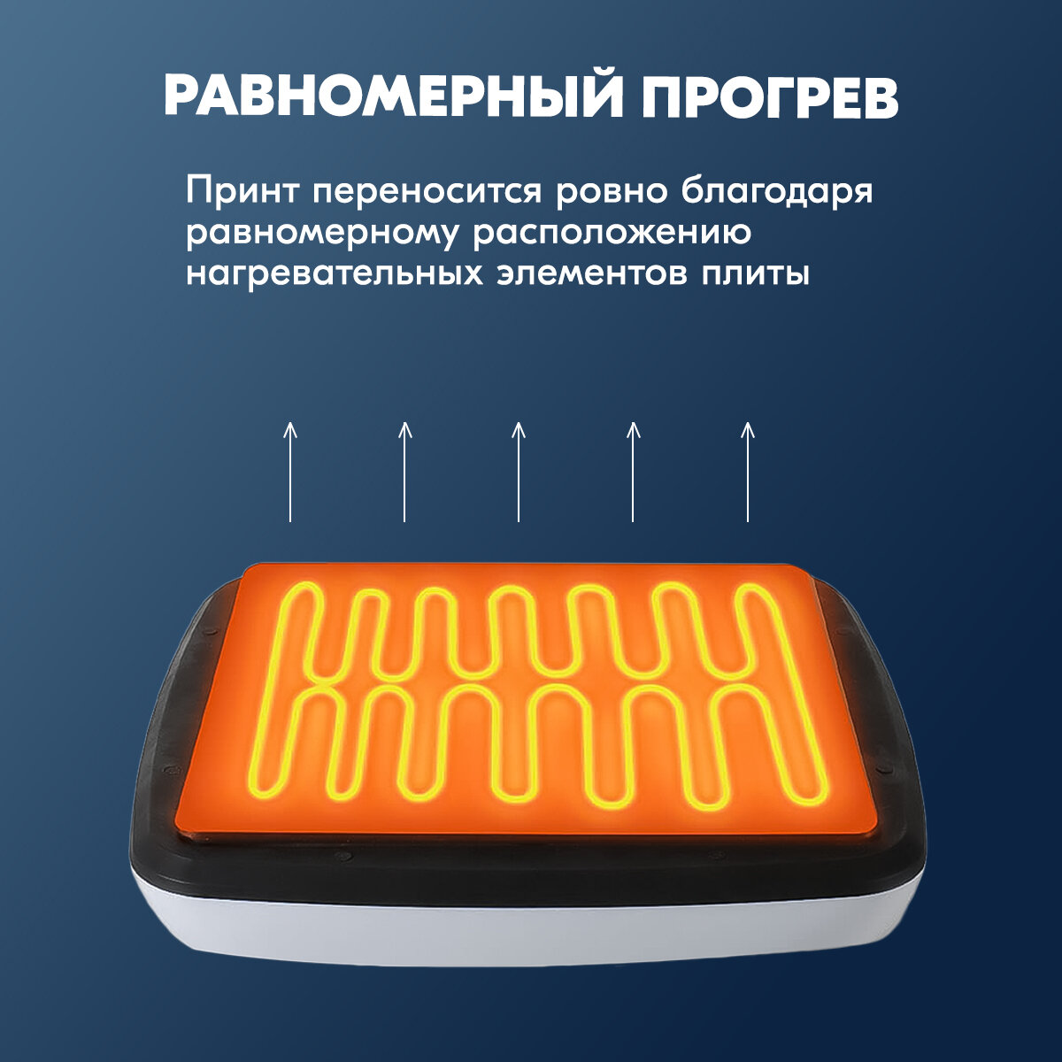 Портативный ручной термопресс с плитой размером 25 х 30 cм - отличный вариант для переноса небольшого изображения / рисунка или логотипа на ткань (футболки, худи, х/б сумки, кепки и др.), на металлические пластины и прочие плоские поверхности.