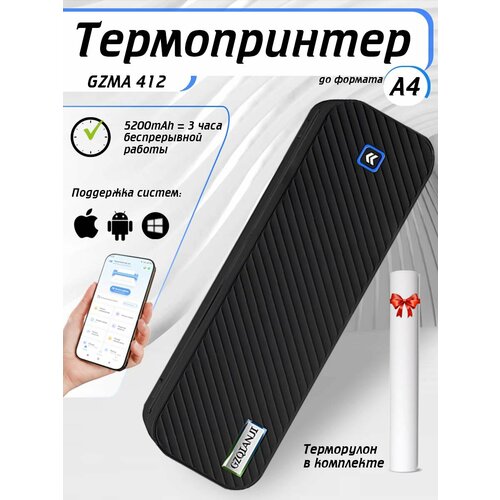 Компактный термопринтер GZMA 412 черного цвета, идеально подходящий для печати: