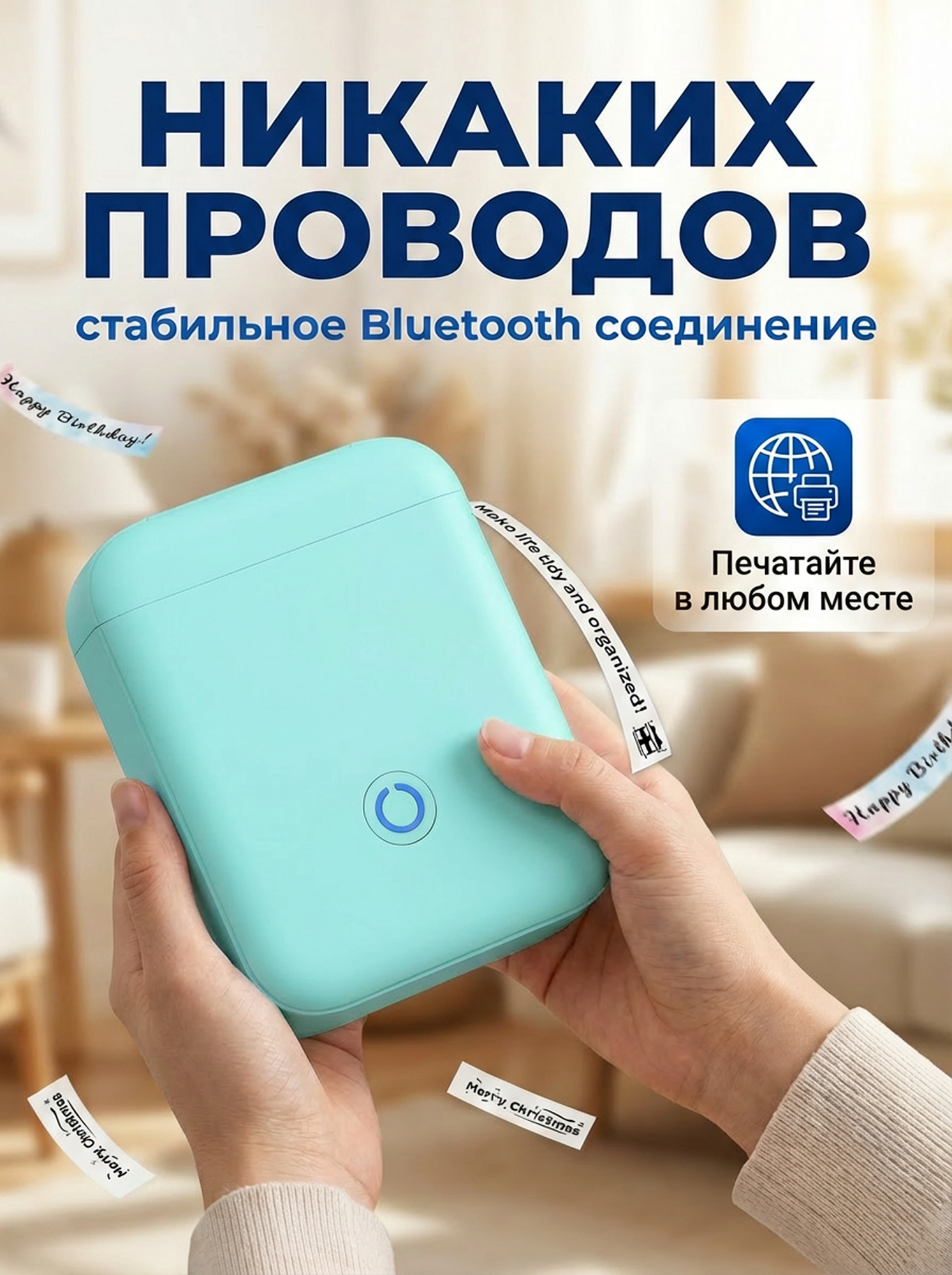 Купить Термопринтер для печати этикеток, штрих-кодов с Bluetooth для смартфона с доставкой по всей России.
