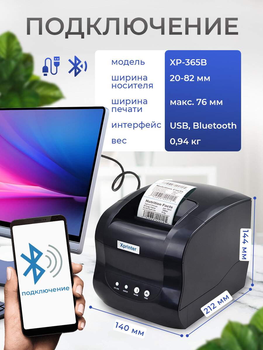 Принтер этикеток XPrinter XP 365B 203dpi, USB и Bluetooth, Черный: сравнение цен, характеристики, фото, актуальное наличие и цены.