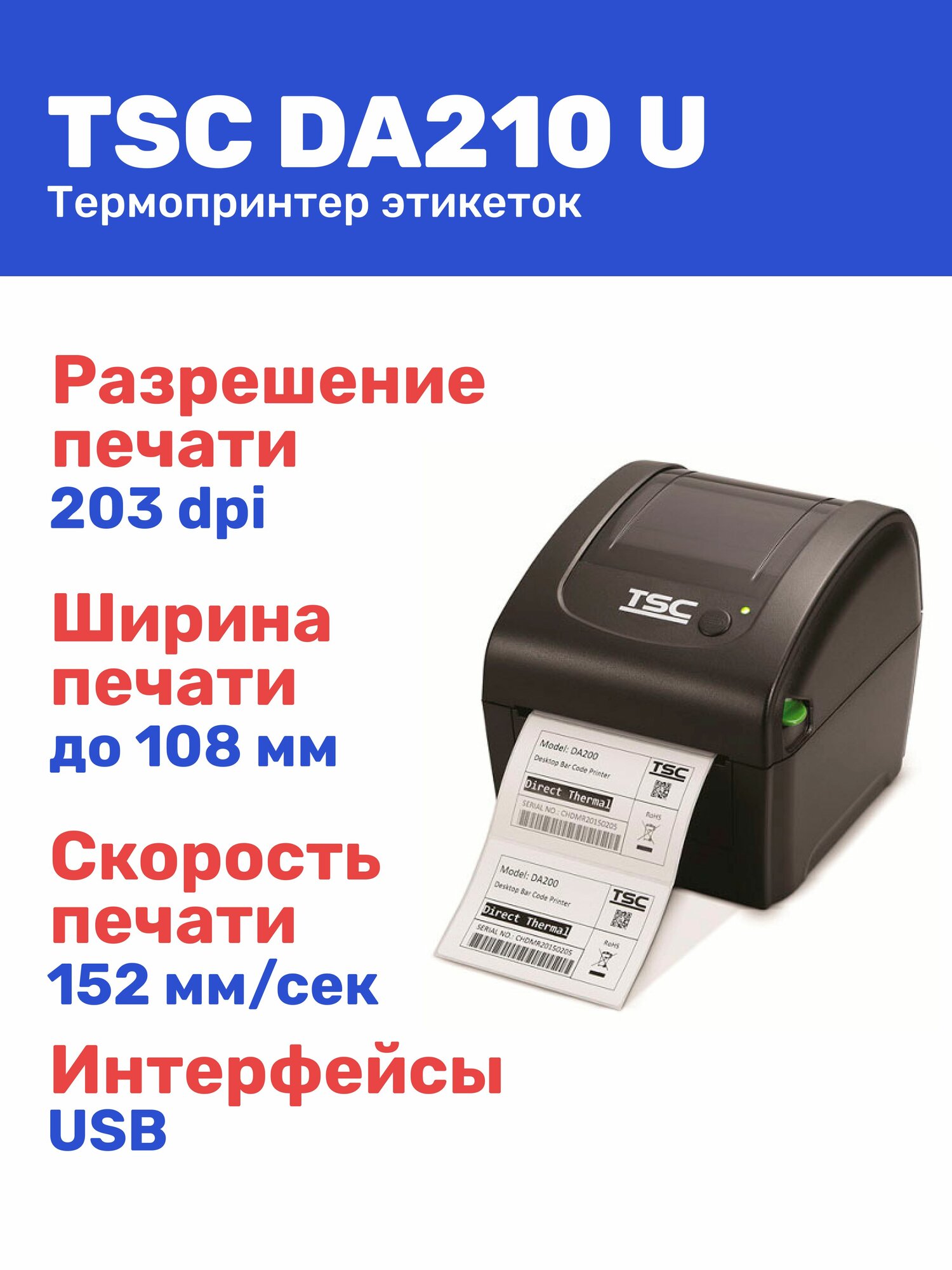 | Разрешение печати | 203 dpi |