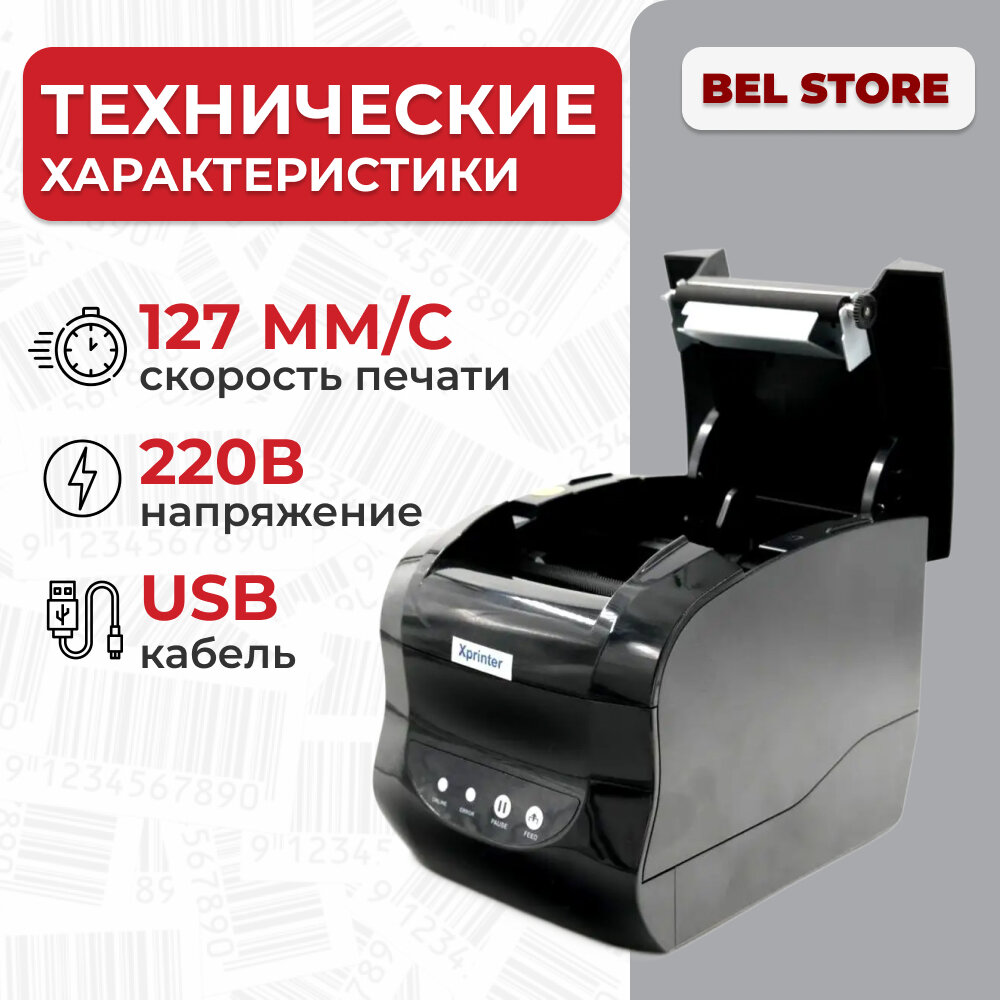 Термопринтер этикеток Xprinter, 203 dpi, 127 мм/сек, 82 мм, USB2.0 (XP-365B) черный: сравнение цен, характеристики, фото, актуальное наличие и цены.