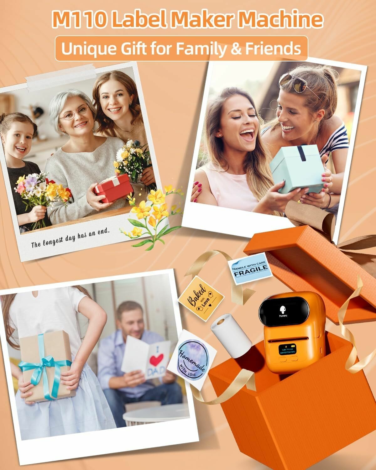 Термопринтер Phomemo M110, Bluetooth, двусторонний, с дисплеем, автоматическая печать Подарить 100 листов бумаги